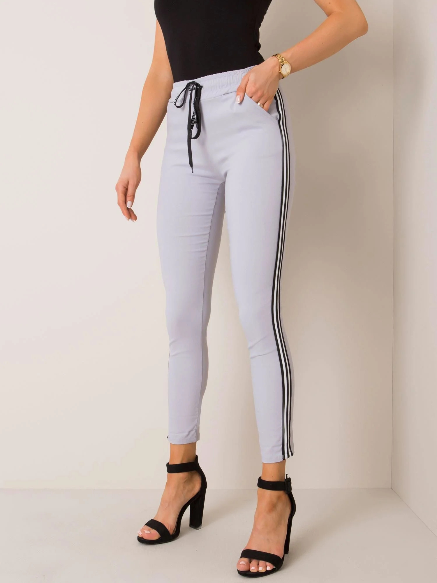 OCH BELLA Šedé kalhoty s lemováním.