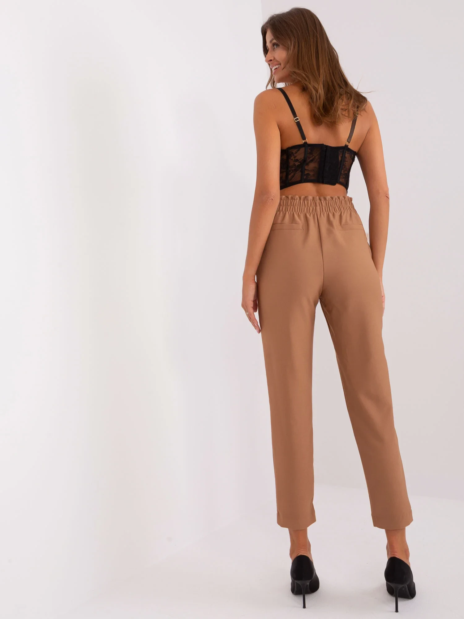 Hnědé elegantní kalhoty s kapsami OCH BELLA .