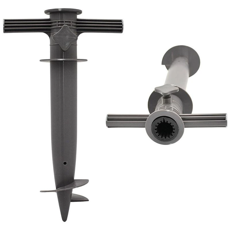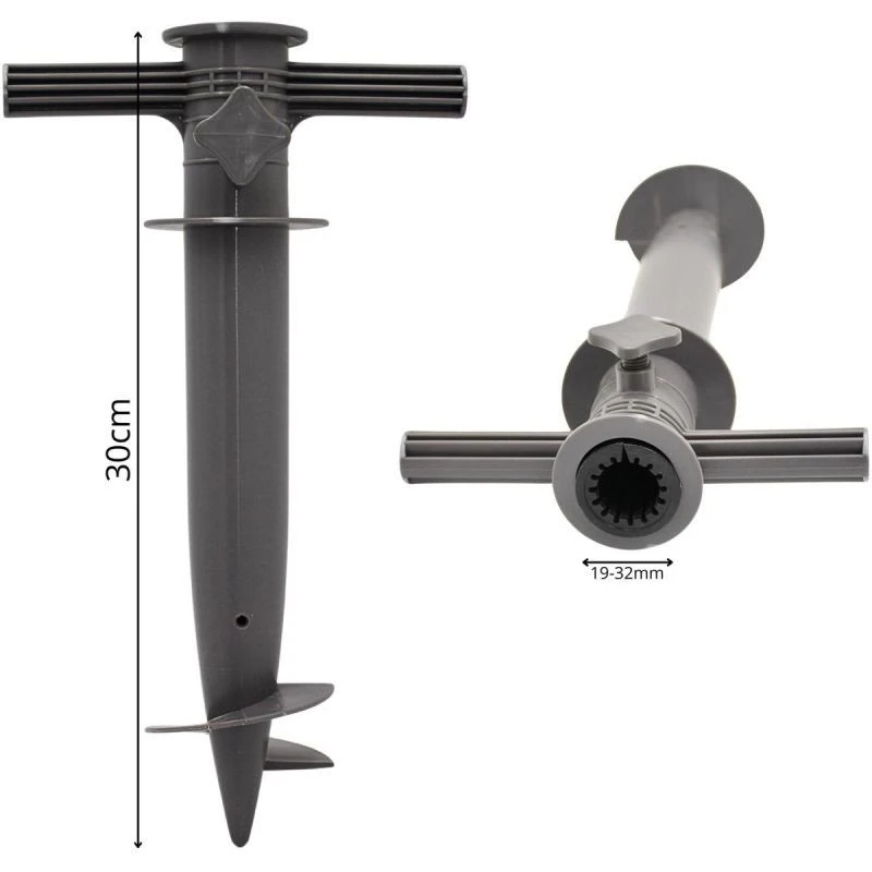 Šroubovací základna zajišťuje pevné a stabilní upevnění slunečníku a minimalizuje riziko jeho převrácení i při silném větru. Dlouhý a široký špejle umožňuje pevné upevnění základny k písku, což zvyšuje její stabilitu.