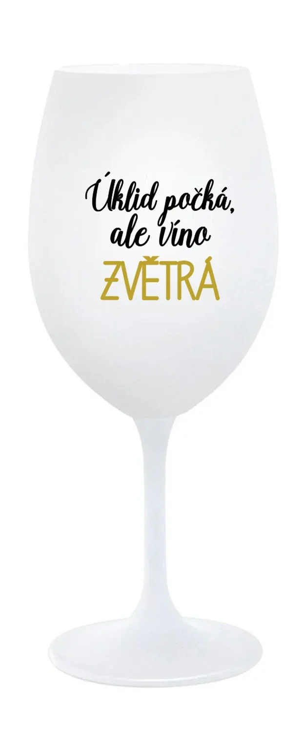 ÚKLID POČKÁ, ALE VÍNO ZVĚTRÁ - bílá sklenice na víno 350 ml