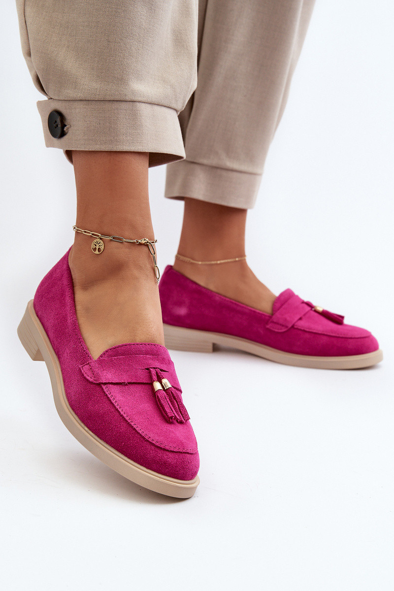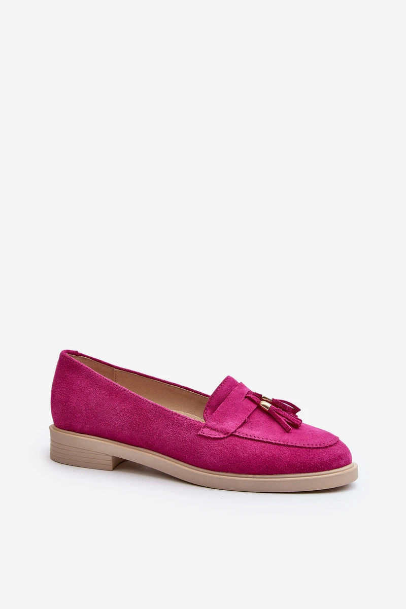 Dámské mokasíny vyrobené z přírodního semiše, charakterizované plochým podpatkem, který zaručuje stabilitu během chůze. Přední část je zdobená jemnými lemovkami, které dodávají jemnost a styl. Tvarovaná stélka poskytuje další pohodlí během dlouhodobého nošení. Ideální volba pro ty, kteří ocení jak módní vzhled, tak pohodlí. Při výběru velikosti se řiďte tabulkou velikostí.