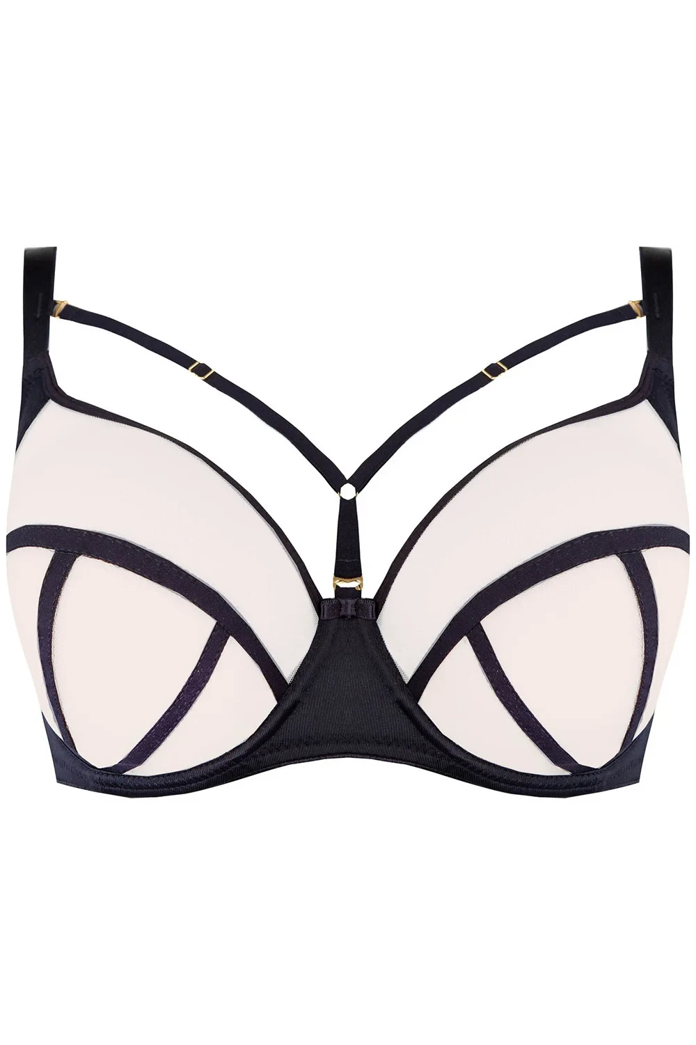 Podprsenka značky Unikat, model Griselda, má drátky, které podporují a tvarují prsa, svislé kostice na bocích, nastavitelná ramínka bez možnosti odepnutí, kovové háčky na ramínkách, zapínání na háčky a očka, zadní díl, vyrobená z 83 % polyamidu, 12 % elastanu, 5 % bavlny, pro ženy.