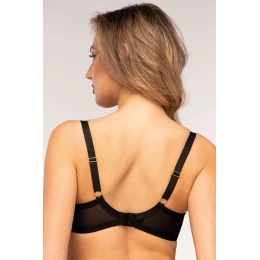 Biustonosz marki Unikat. Model Griselda. Posiada druty, które podpierają piersi odpowiednio je kształtując. Fiszbiny pionowe osadzone na bokach. Produkt posiada regulowane ramiączka bez możliwości ich odpięcia. Haczyki do ramiączek metalowe. Biustonosz zapinany na haftki. Miejsce zapięcia: tył. Produkt został wykonany z 83% poliamid, 12% elastan, 5% bawełna. Produkt damski.