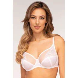 Podprsenka značky Unikat, model Virginia, má drátky, které podporují a tvarují prsa, svislé velrybí kostice na bocích, nastavitelná ramínka, kovové háčky na ramínkách, zapínání na háčky a oka, zadní díl, vyrobeno z 83 % polyamidu, 12 % elastanu, 5 % bavlny, ženská barva.