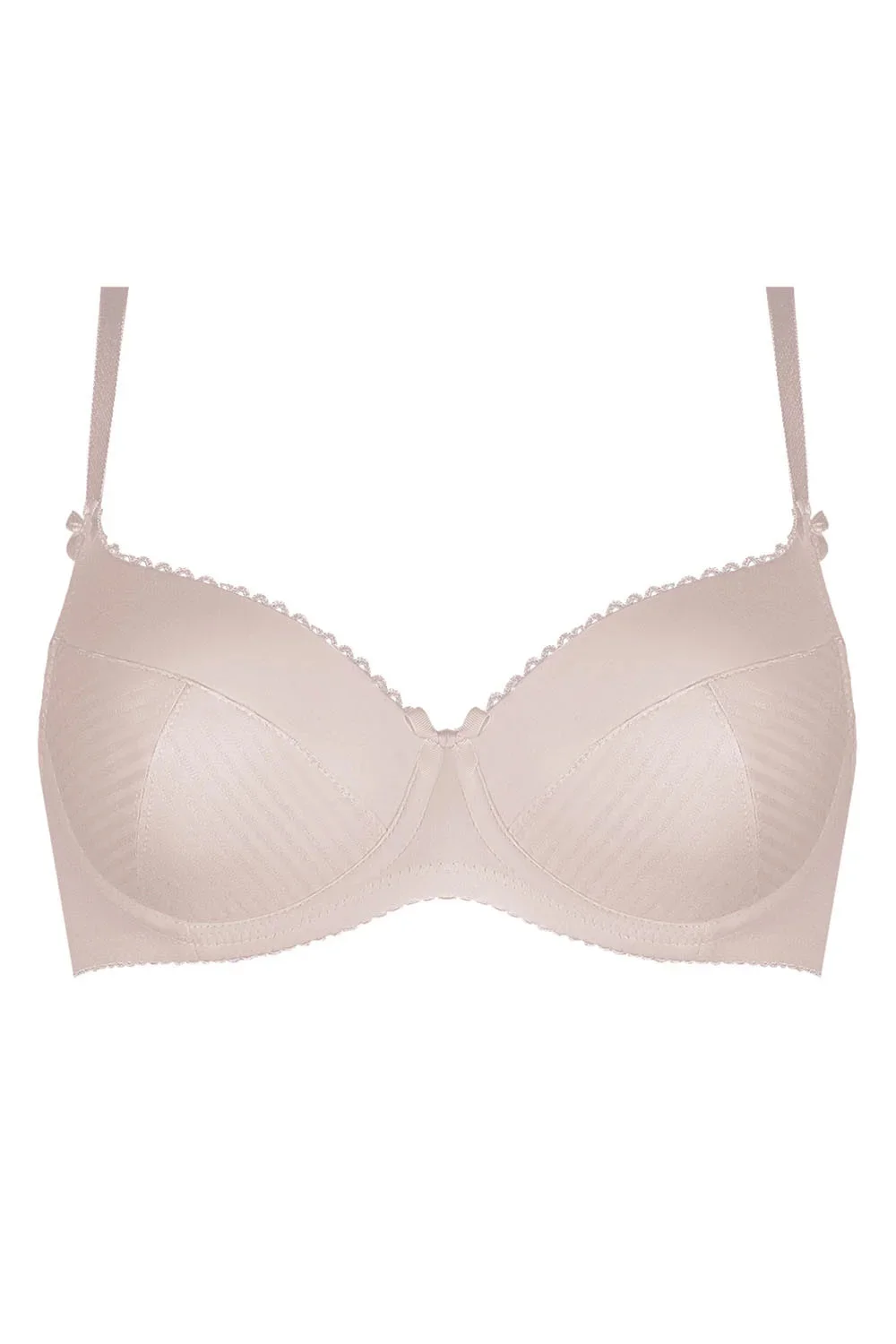 Podprsenka Unikat, model Fiona, s drátky, které podporují a tvarují prsa. svislé kostice na bocích. nastavitelná ramínka, neodnímatelná. kovové háčky na ramínkách. zapínání na háčky. místo zapínání: na zádech. tři řady svislých háčků. dvě řady vodorovných háčků. 83 % polyamid, 12 % elastan, 5 % bavlna. dámské oblečení.