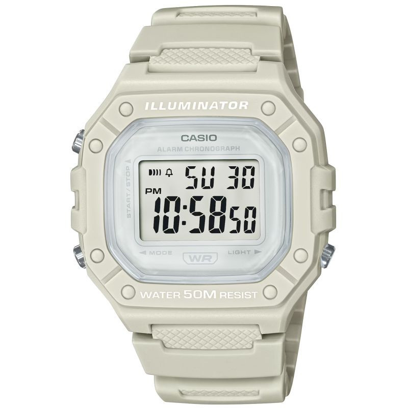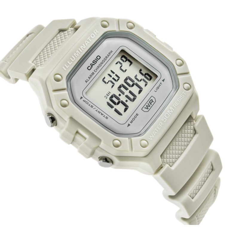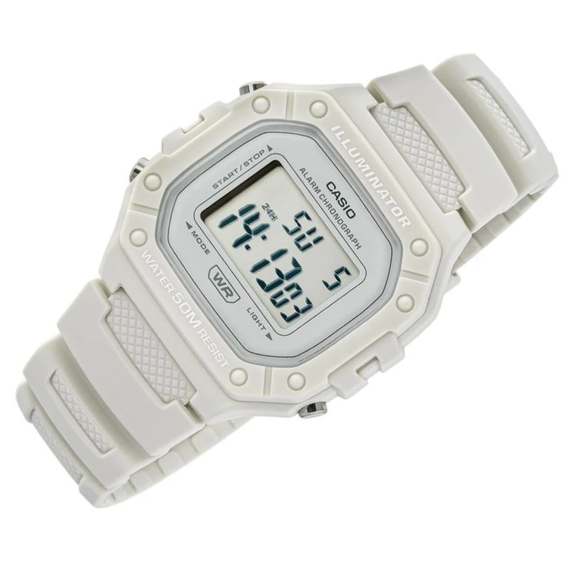 Casio W-218HC-8AVDF dla kobiet i mężczyzn to esencja klasycznego stylu Casio w nowoczesnym, sportowym wydaniu: wyrazisty, prostokątny wyświetlacz LCD w solidnej kopercie, czytelny na pierwszy rzut oka, z subtelnymi akcentami, które dodają mu świeżości i uniwersalności. Zegarek został stworzony do codziennego tempa: wodoszczelność 50 m, podświetlenie LED dla pewnego odczytu po zmroku, 7-letnia bateria dla długiej niezawodności, a także praktyczny zestaw funkcji – stoper 1/100 s (do 60 min), alarm dzienny i sygnał pełnej godziny, automatyczny kalendarz oraz format 12/24 h. Lekki i wygodny,zszkiełkiem z tworzywa (Resin Glass) i wytrzymałym paskiem z żywicy, świetnie sprawdzi się zarówno na treningu, jak i w codziennych stylizacjach. Jeśli szukasz bezkompromisowej prostoty połączonej z legendarną trwałością Casio, W-218HM-7AVDF będzie strzałem w dziesiątkę.