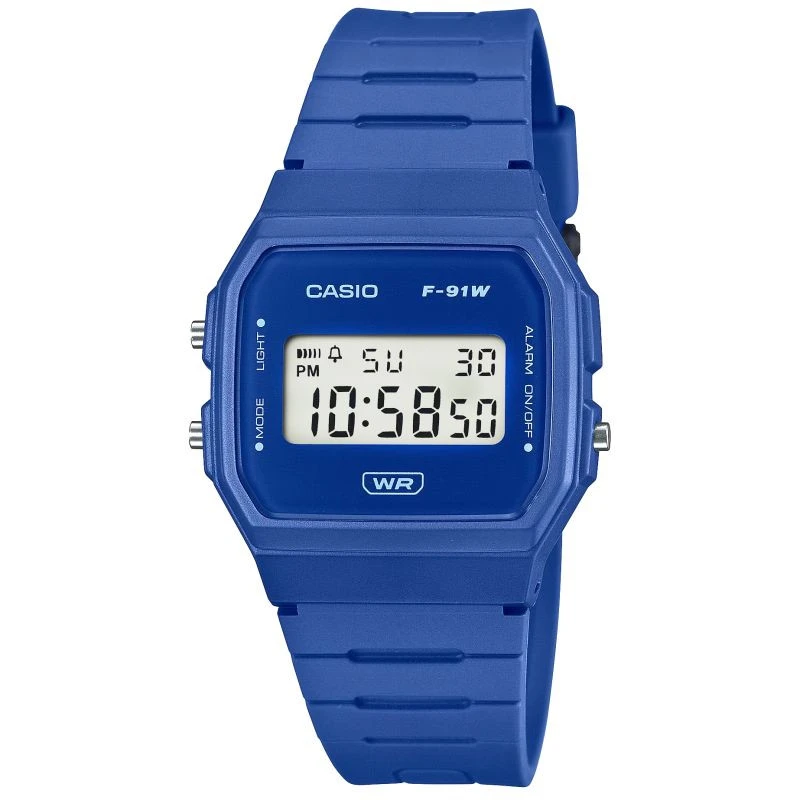 Zegarek Casio F-91WB-1ADF oferuje zestaw klasycznych, praktycznych funkcji, które sprawiły, że ten model stał się ikoną prostoty i niezawodności: precyzyjny czasomierz cyfrowy z 24-godzinnym formatem, stoper 1/100 sekundy z możliwością pomiaru czasu pośredniego, alarm dzienny z funkcją sygnału pełnej godziny, automatyczny kalendarz uwzględniający dni miesiąca, podświetlenie LED (Micro Light) do odczytu w ciemności, żywotność baterii do 7 lat, wodoszczelność typu Water Resistant chroniąca przed zachlapaniami, tryb 12/24 h, kompaktowa i lekka konstrukcja z tworzywa sztucznego zapewniająca komfort noszenia, a także klasyczny design retro z wyraźnym wyświetlaczem LCD i charakterystycznym prostokątnym kształtem koperty, dzięki czemu F-91WB-1ADF łączy funkcjonalność, trwałość i ponadczasowy styl w jednym, kultowym zegarku Casio.