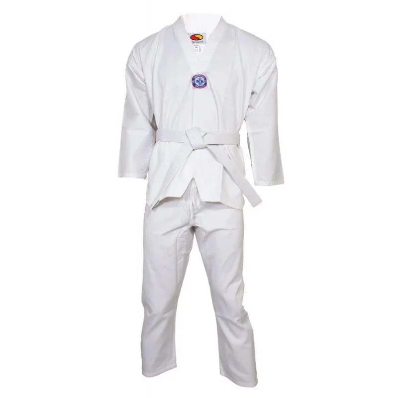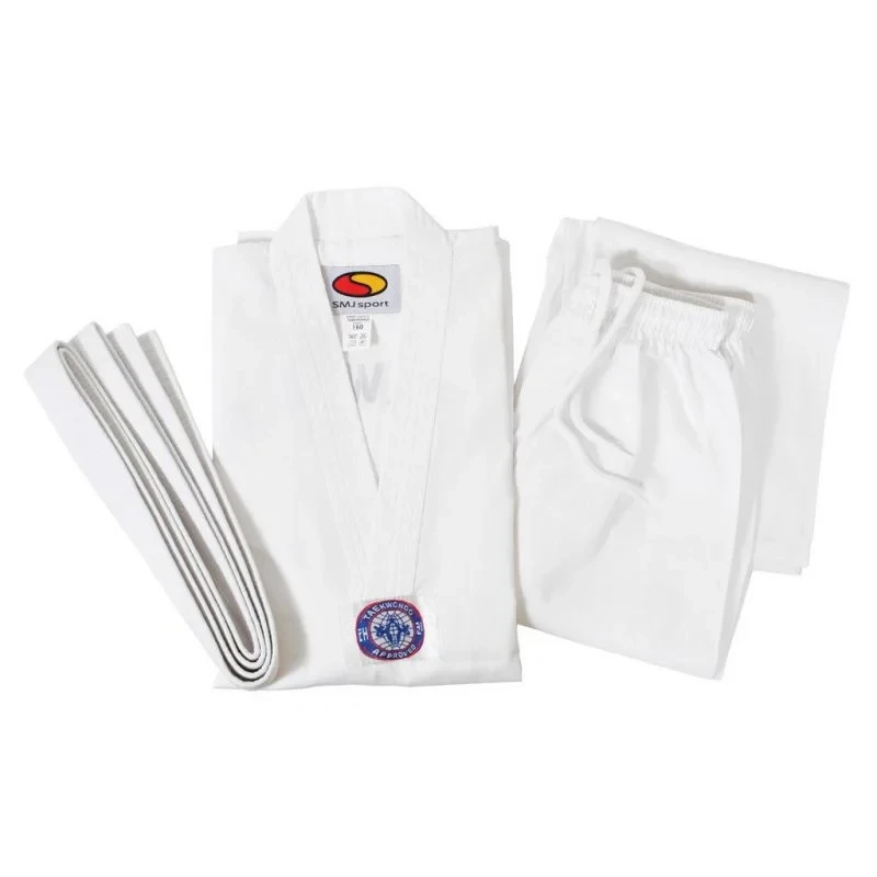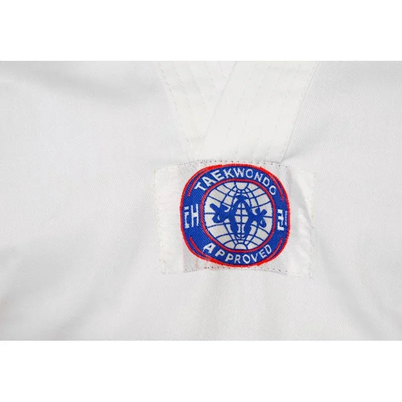 - Na hrudi je nášivka s logem federace WTF, na zádech je jasně viditelný název Taekwondo.