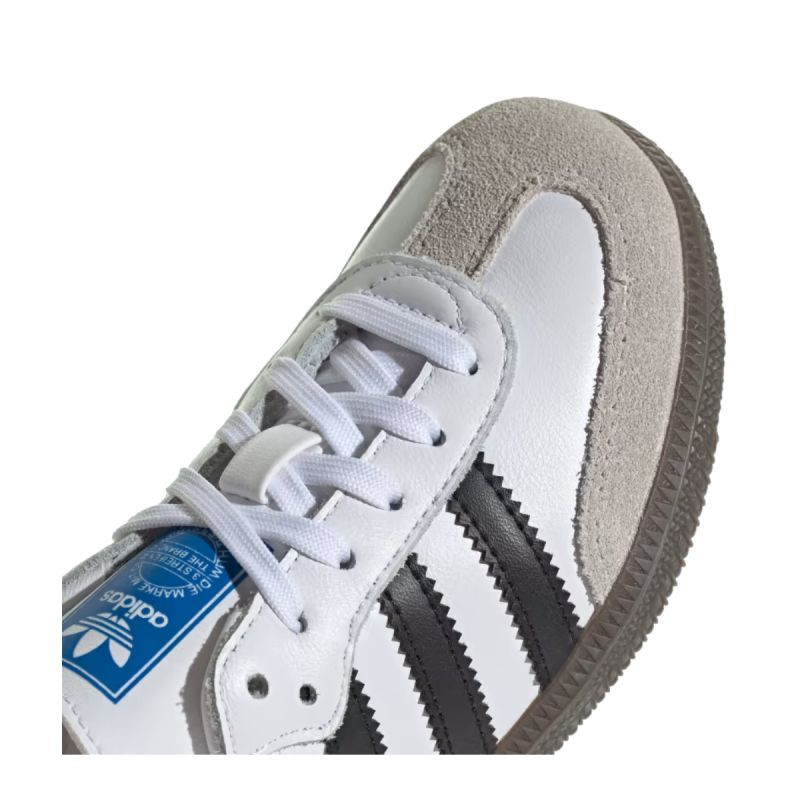 Dětská kožená obuv Adidas modelSamba OG v malých velikostech, bílá barva.