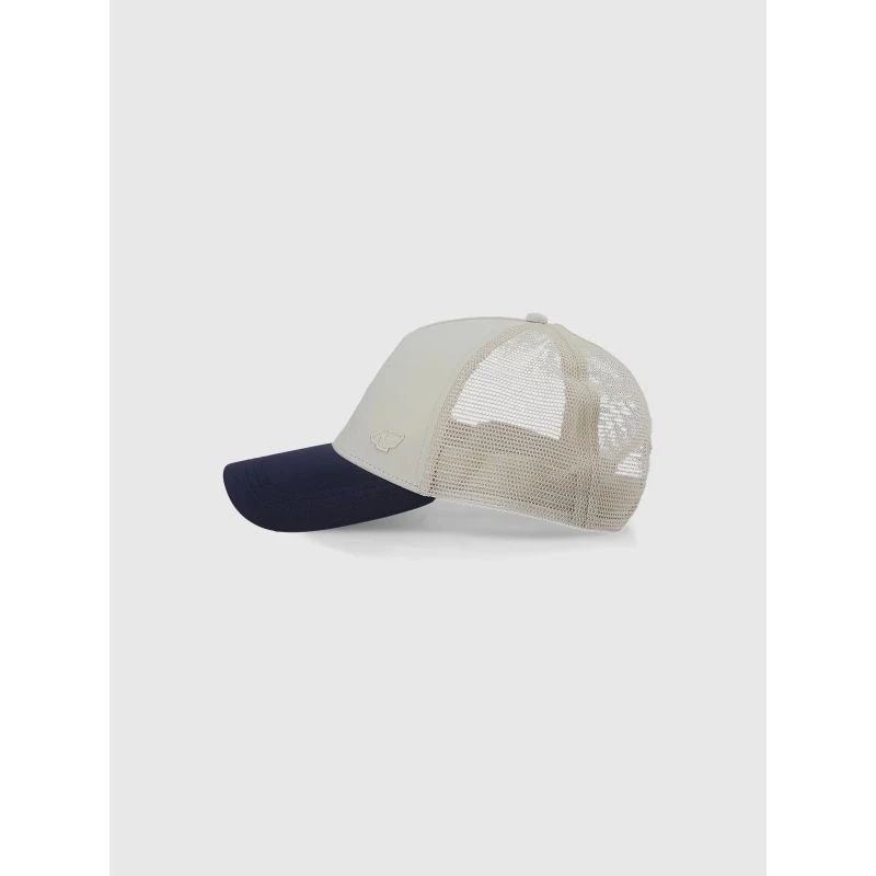 Model posiada 5 paneli, w tym usztywniany panel przedni z naszywką oraz siateczkowe panele z tyłu, które wspomagają wentylację w gorące dni. Zakrzywiony daszek osłania twarz przed słońcem. Dzięki plastikowemu zatrzaskowi typu snapback czapkę można łatwo dopasować do obwodu głowy. Komfort zwiększa szybkoschnąca opaska wewnątrz.