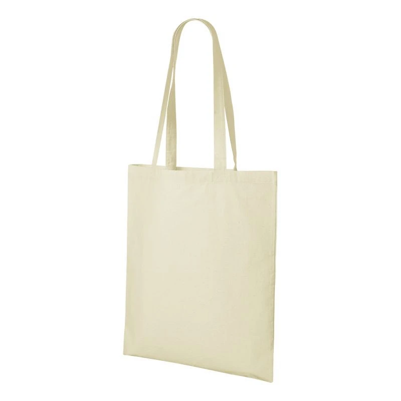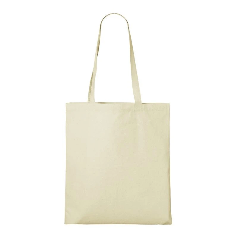 Plátěná vazba, 100 % bavlna, středně těžká bavlněná taška, praktická a snadno skladovatelná, délka popruhů umožňuje nošení v ruce nebo na rameni, křížové prošívání na popruzích pro větší pevnost, velikost tašky 45 x 40 cm, ucha 70 x 2,5 cm