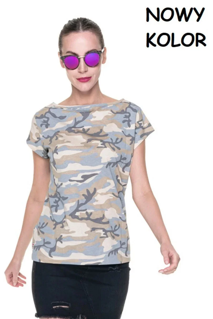 Dámské tričko ušité z hladkého materiálu single jersey s tištěným maskáčovým vzorem. Tričko má dvojté švy a pevné lem. Gramáž: 170g/m2.