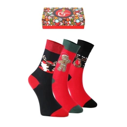 Přidejte trochu vánočního humoru do svého šatníku s touto sadou 3 párů veselých vánočních ponožek! Sada obsahuje ponožky s veselým sobem, perníkovou postavičkou a roztomilým Mikulášem – každý vzor přitahuje pozornost a vytváří kouzelnou atmosféru Vánoc.
