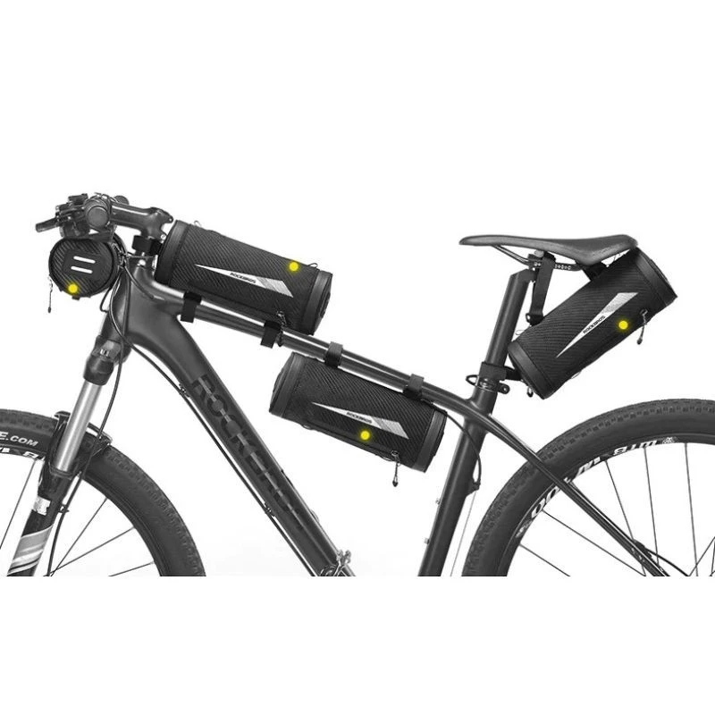 Multifunkcyjna sakwa rowerowa marki ROCKBROS, którą można zamocować zarówno na kierownicy, jak i na ramie, czy też pod siodłem.