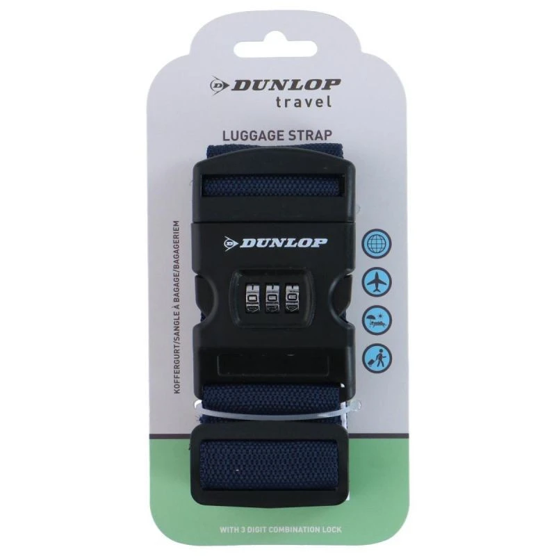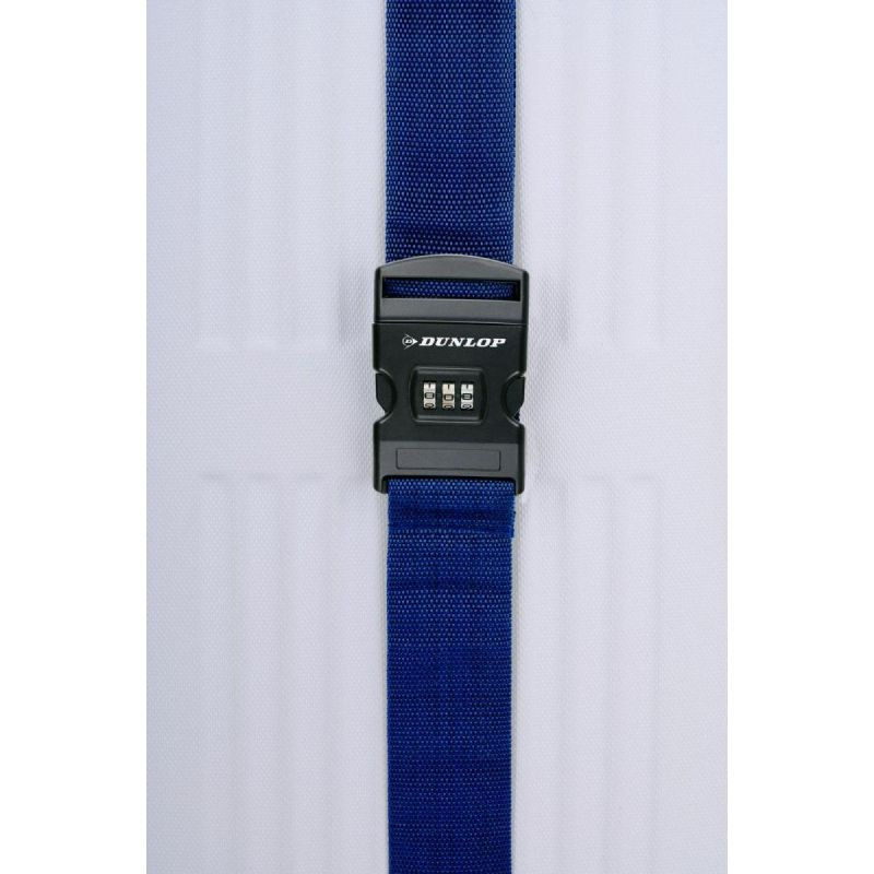 UNIWERSALNY PAS ZABEZPIECZAJĄCY DO WALIZKI SPINAJĄCY NA SZYFR DUNLOP 200x5CM NIEBIESKI zabezpieczy Twój bagaż przed niechcianym otwarciem i pomoże wyróżnić się wśród innych walizek na lotnisku.