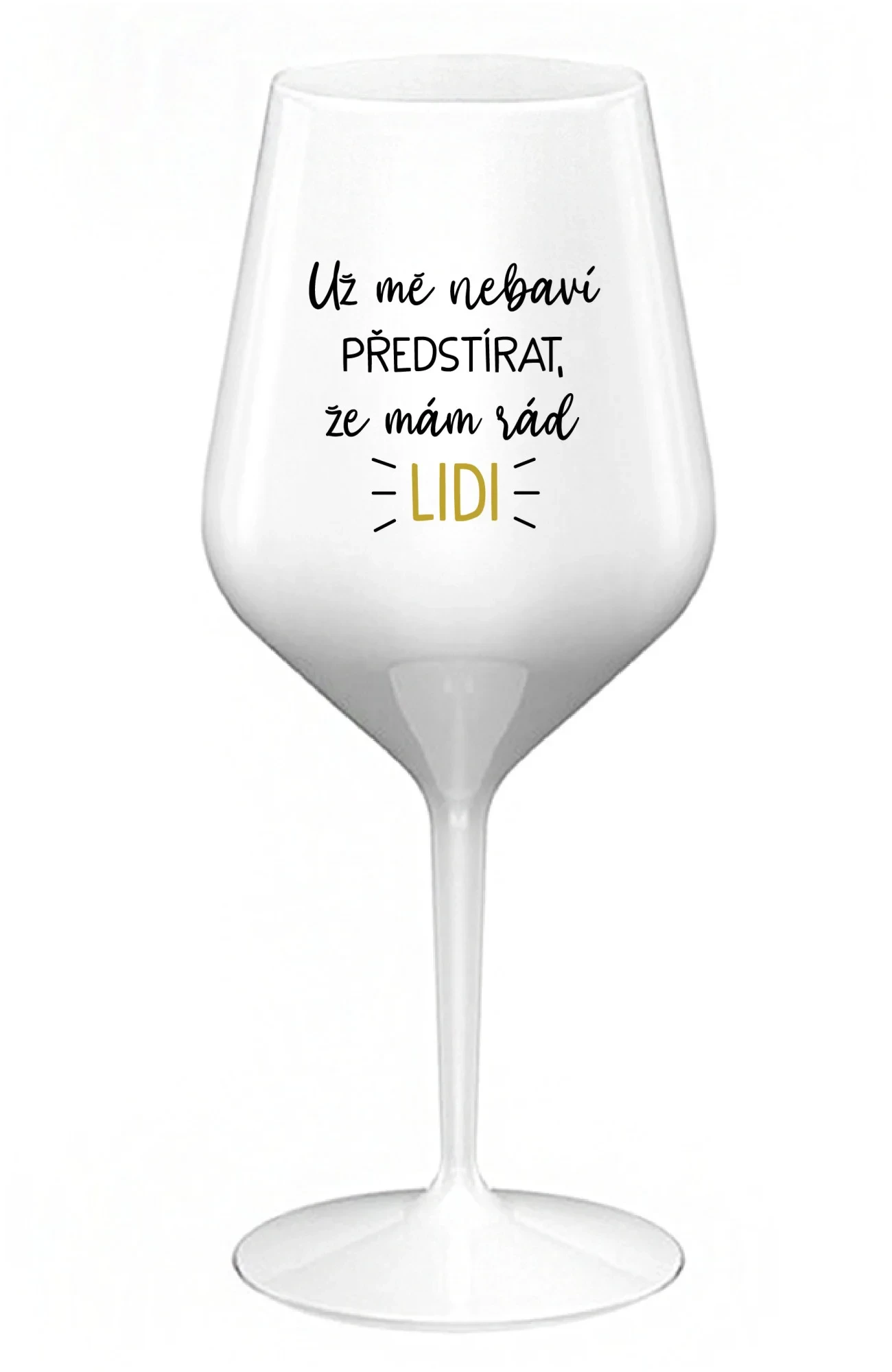 Přidání recenze k UŽ MĚ NEBAVÍ PŘEDSTÍRAT, ŽE MÁM RÁD LIDI - bílá nerozbitná sklenice na víno 470 ml