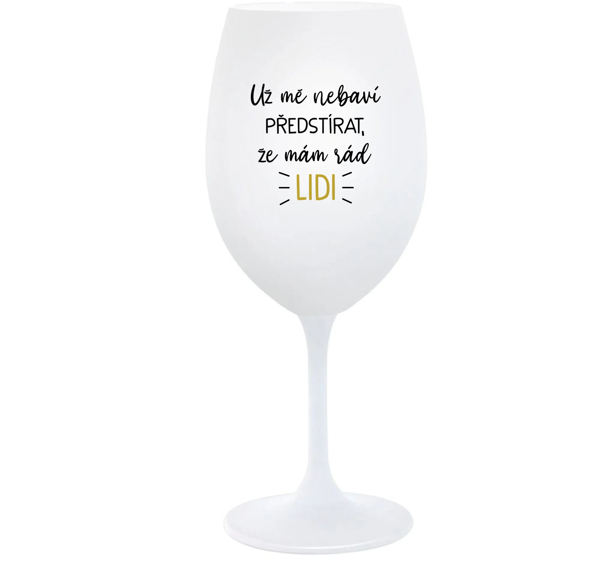 UŽ MĚ NEBAVÍ PŘEDSTÍRAT, ŽE MÁM RÁD LIDI - bílá sklenice na víno 350 ml