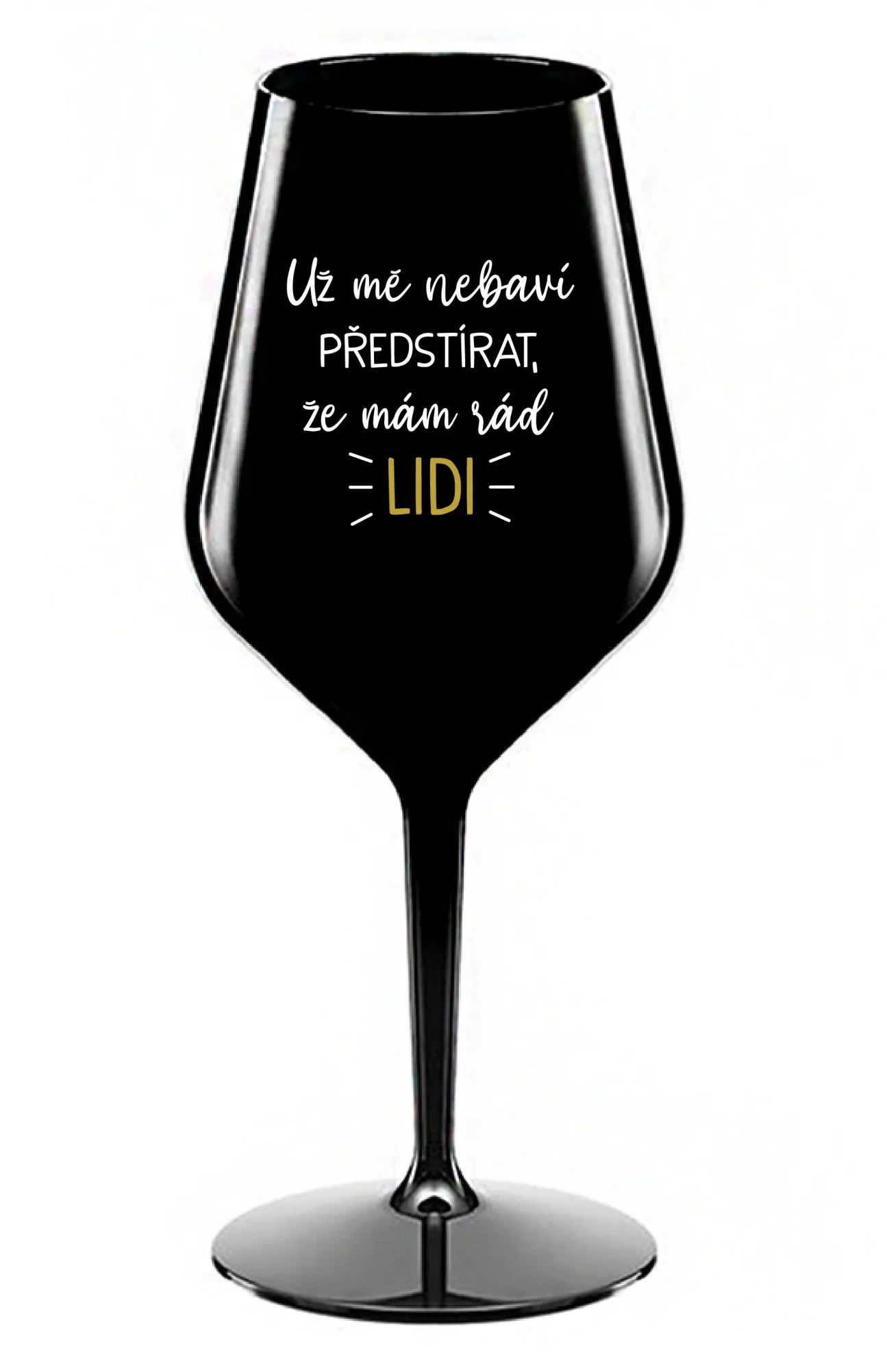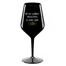 UŽ MĚ NEBAVÍ PŘEDSTÍRAT, ŽE MÁM RÁD LIDI - černá nerozbitná sklenice na víno 470 ml