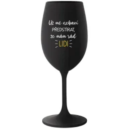 UŽ MĚ NEBAVÍ PŘEDSTÍRAT, ŽE MÁM RÁD LIDI - černá sklenice na víno 350 ml