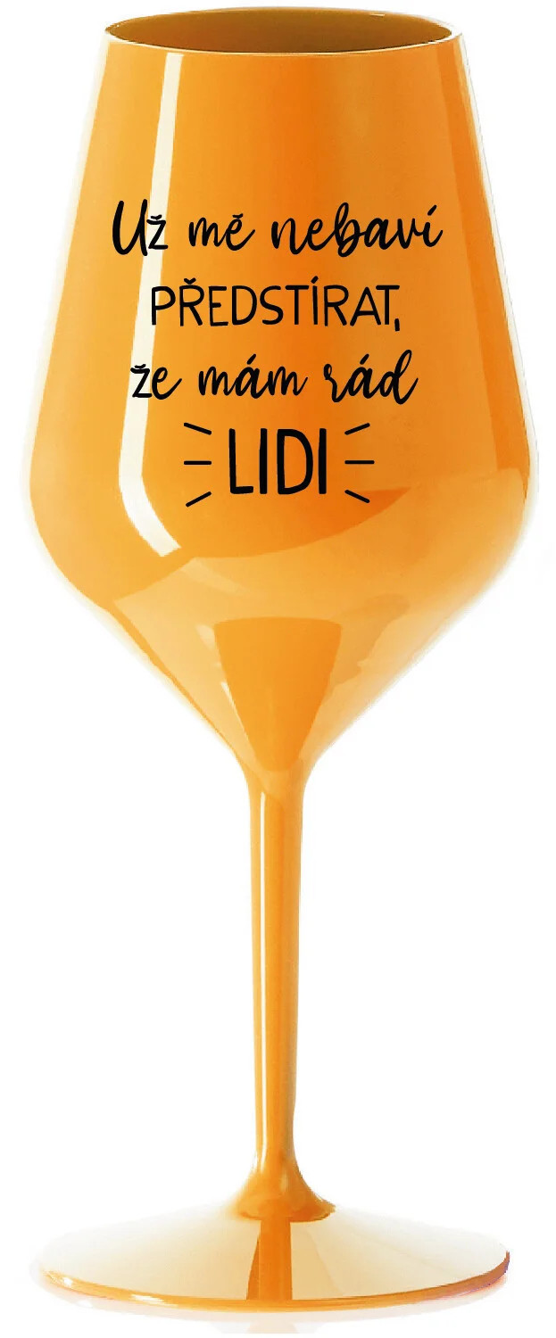 UŽ MĚ NEBAVÍ PŘEDSTÍRAT, ŽE MÁM RÁD LIDI - oranžová nerozbitná sklenice na víno 470 ml