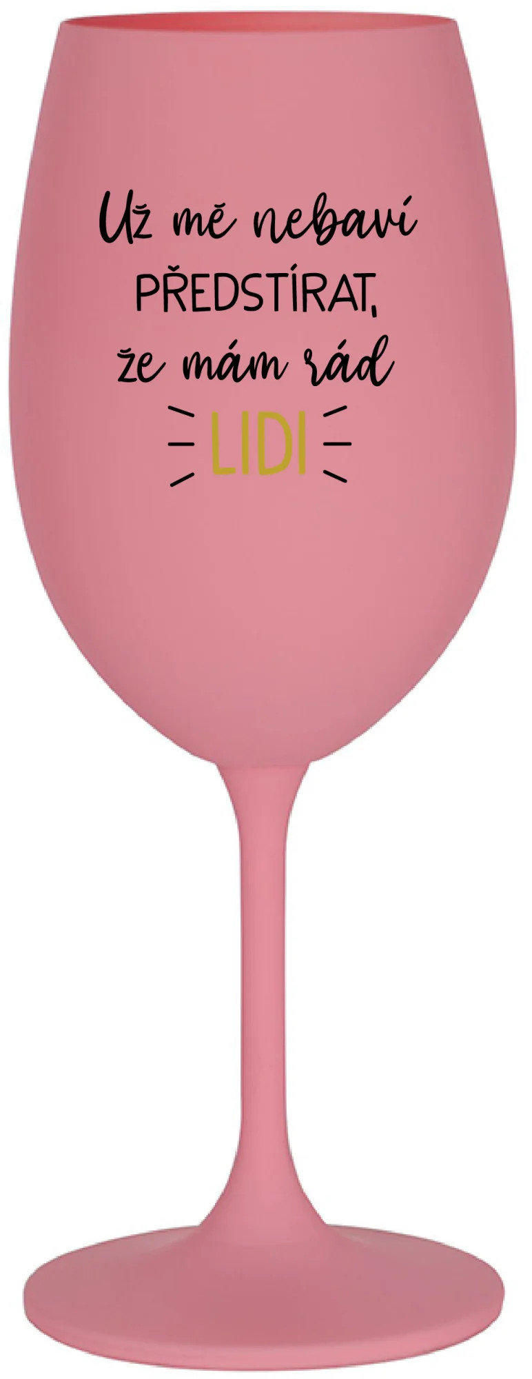 UŽ MĚ NEBAVÍ PŘEDSTÍRAT, ŽE MÁM RÁD LIDI - růžová sklenice na víno 350 ml