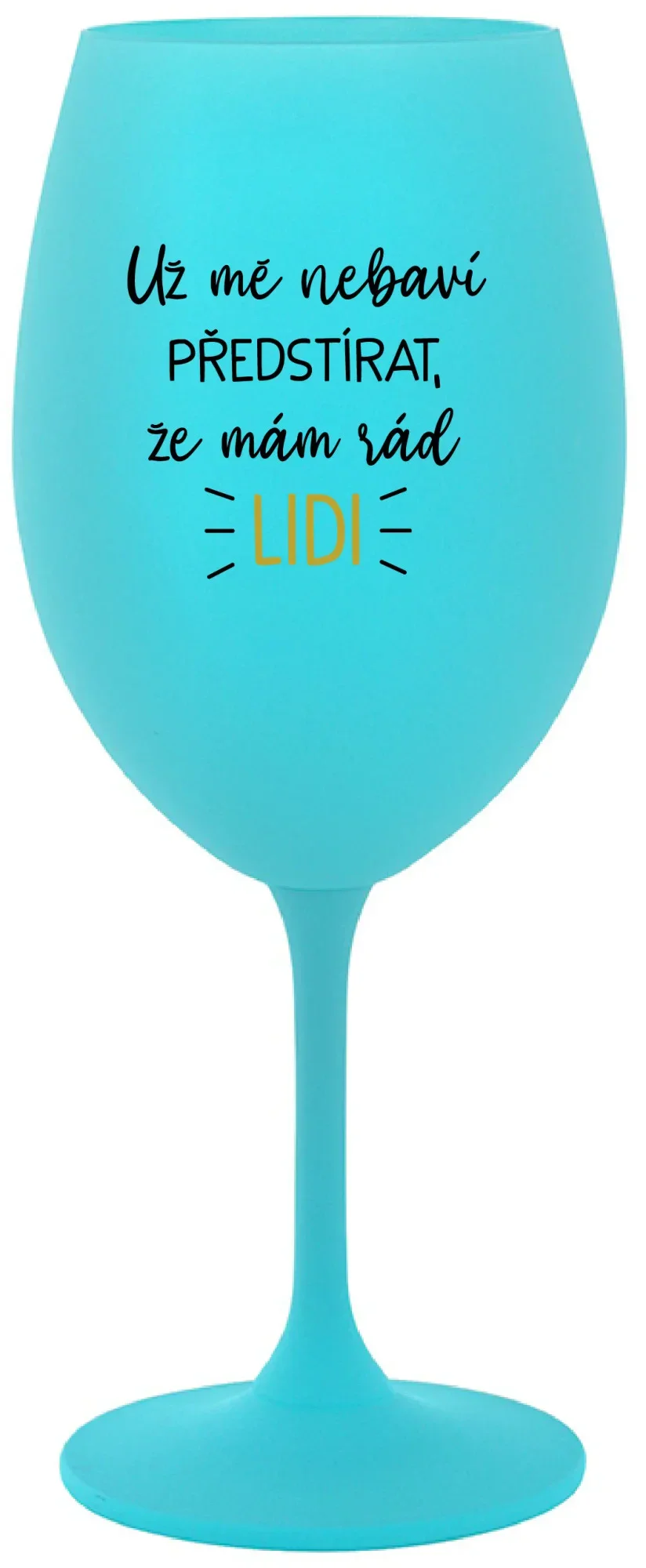 UŽ MĚ NEBAVÍ PŘEDSTÍRAT, ŽE MÁM RÁD LIDI - tyrkysová sklenice na víno 350 ml