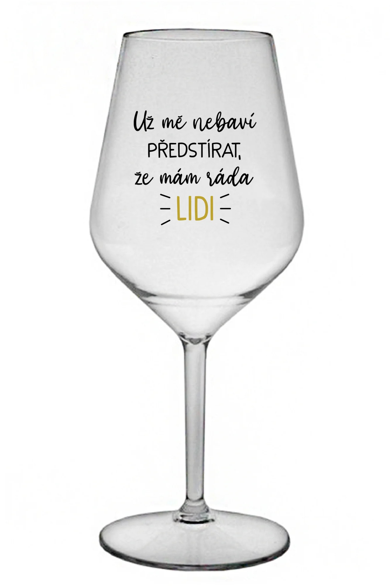 UŽ MĚ NEBAVÍ PŘEDSTÍRAT, ŽE MÁM RÁDA LIDI - čirá nerozbitná sklenice na víno 470 ml