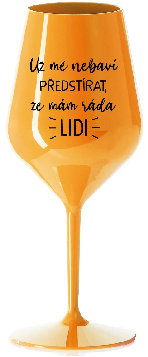 UŽ MĚ NEBAVÍ PŘEDSTÍRAT, ŽE MÁM RÁDA LIDI - oranžová nerozbitná sklenice na víno 470 ml