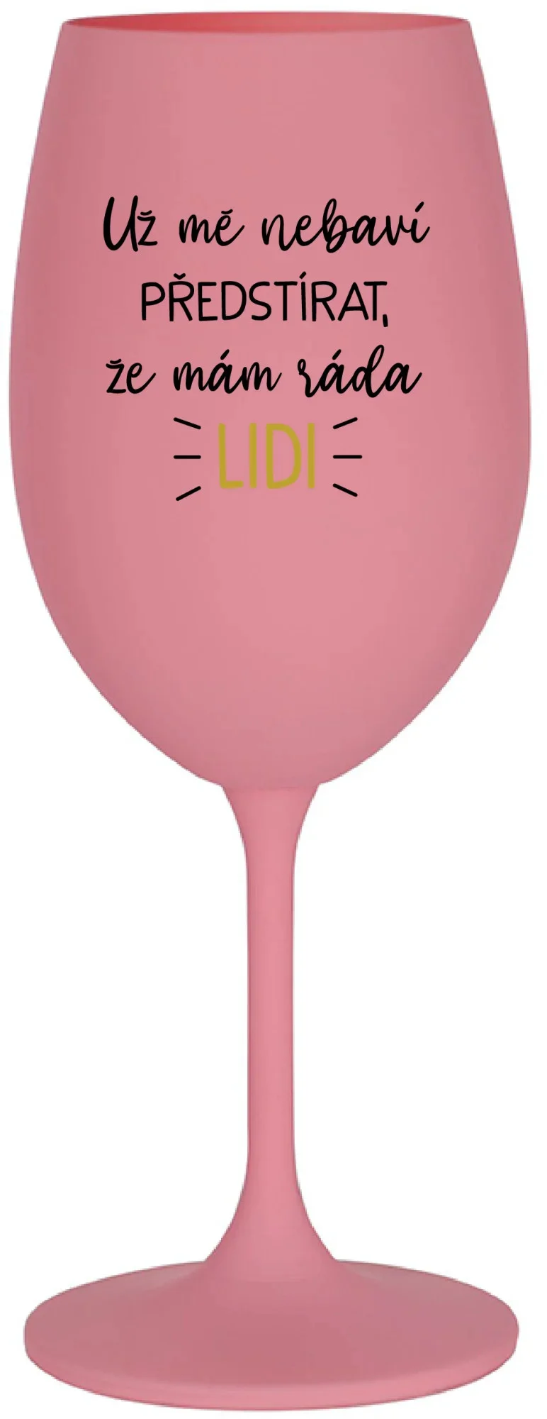 UŽ MĚ NEBAVÍ PŘEDSTÍRAT, ŽE MÁM RÁDA LIDI - růžová sklenice na víno 350 ml