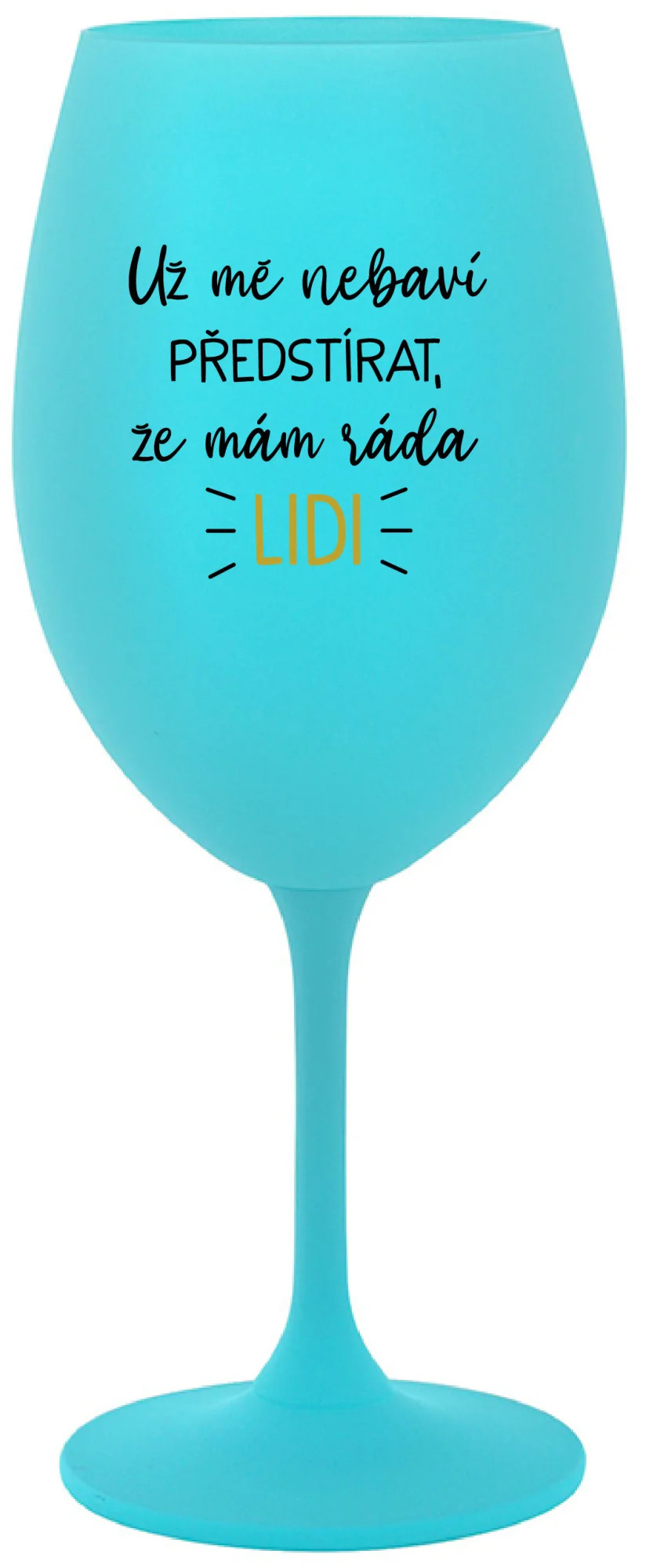 UŽ MĚ NEBAVÍ PŘEDSTÍRAT, ŽE MÁM RÁDA LIDI - tyrkysová sklenice na víno 350 ml