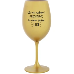 Vinná zlatá sklenice s originálním motivem UŽ MĚ NEBAVÍ PŘEDSTÍRAT, ŽE MÁM RÁDA LIDI je krásným a osobitým dárkem, které ale využijete i Vy sami třeba ve chvílích, kdy si budete chtít zpříjemnit náročný den. Tyto originální vinné sklenice jsou totiž nejen pro výjimečné události, ale i pro běžné večery, které si chcete zpříjemnit sklenkou dobrého vína. Jistě proto potěší každého milovníka vína, i toho, kdo si umí svůj život vychutnat plnými doušky.