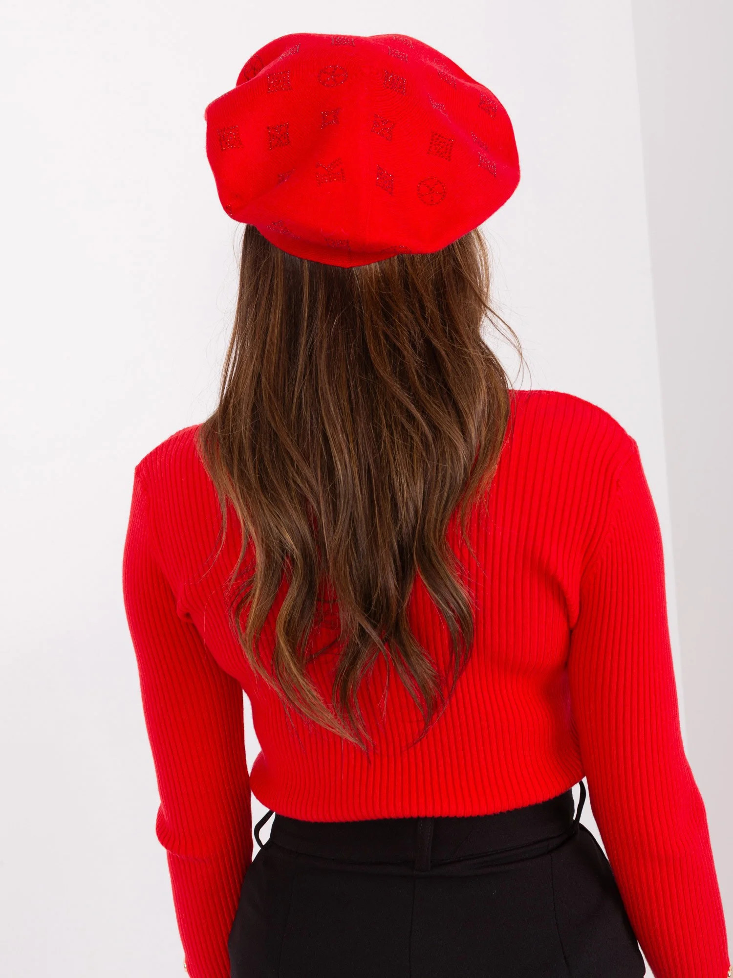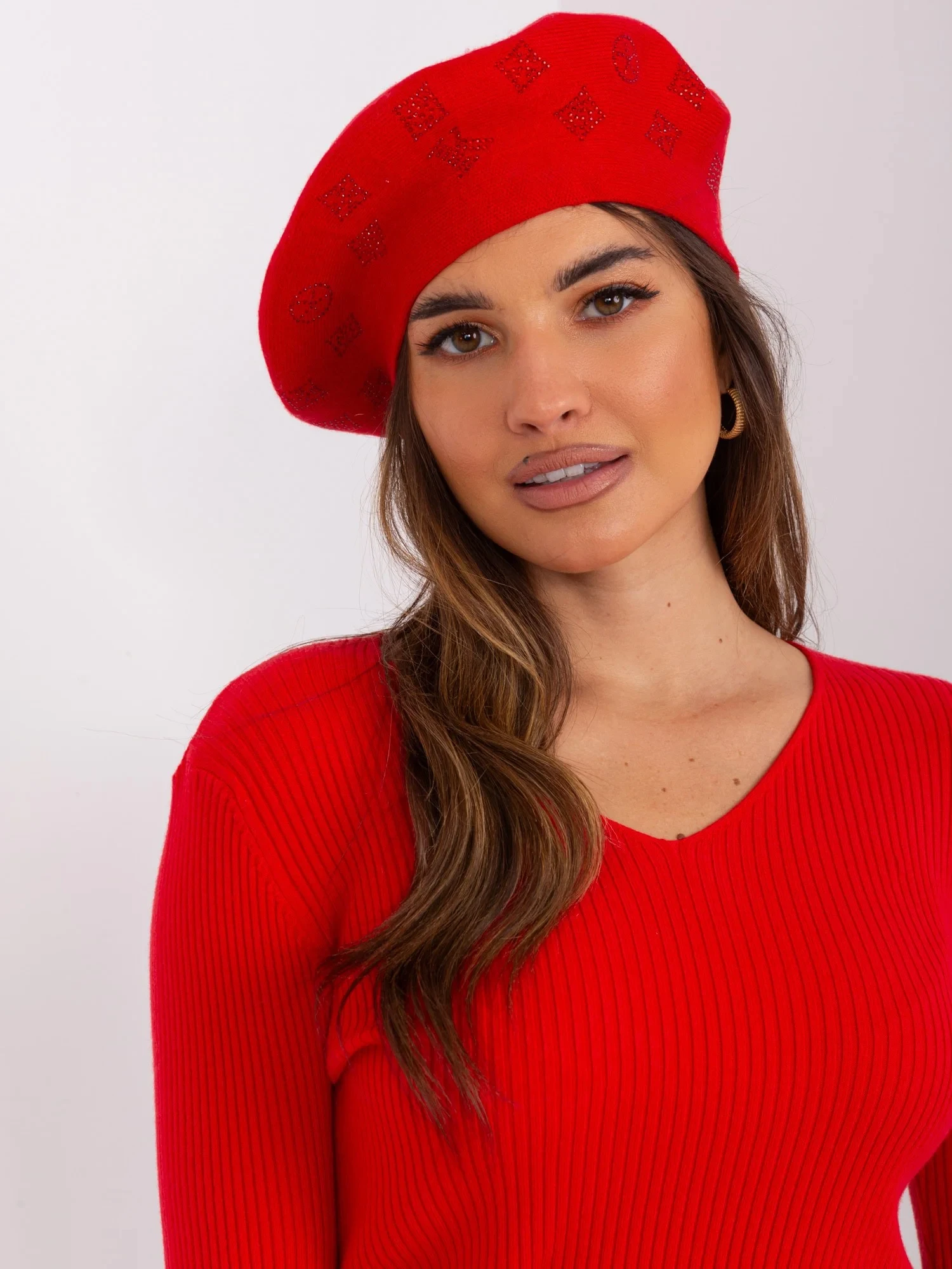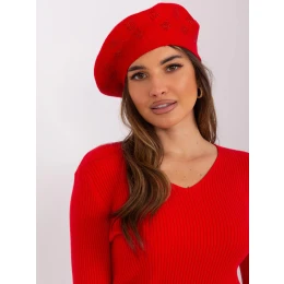 Červený dámský baret s aplikací .
