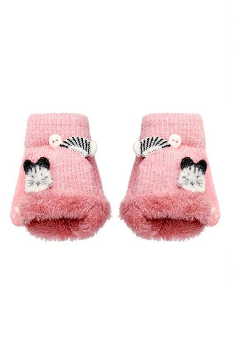 Dívčí rukavice zateplené huňatým kožíškem, s kšiltem, s čepičkou na prstech.