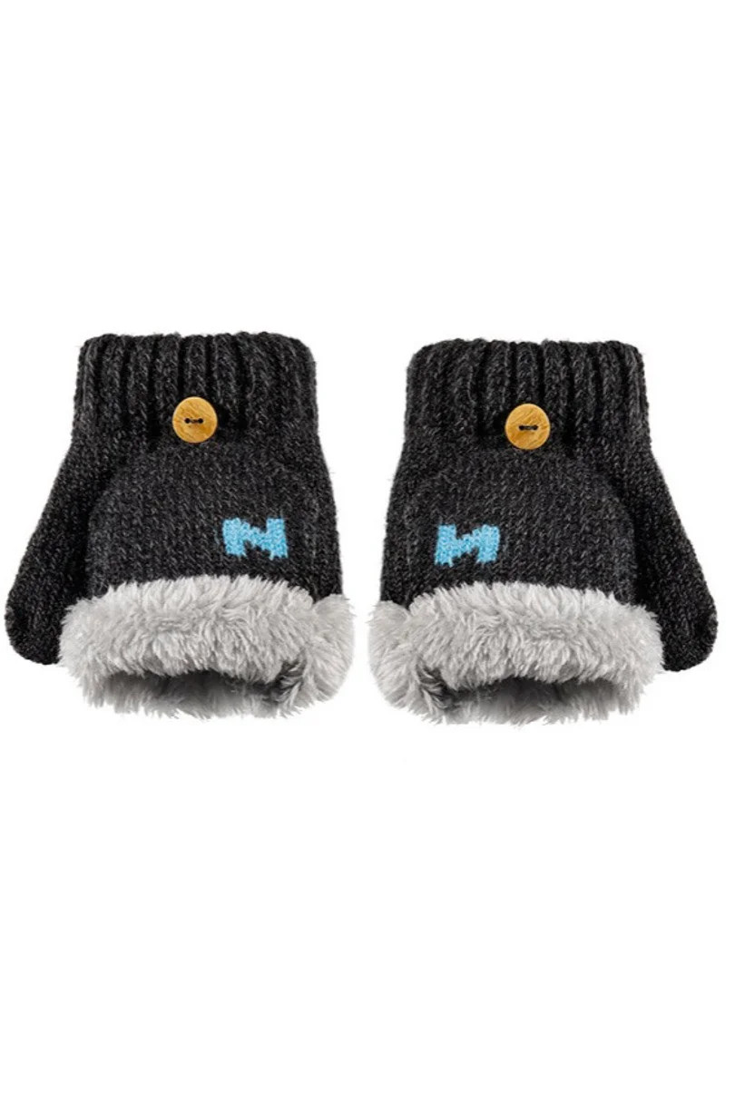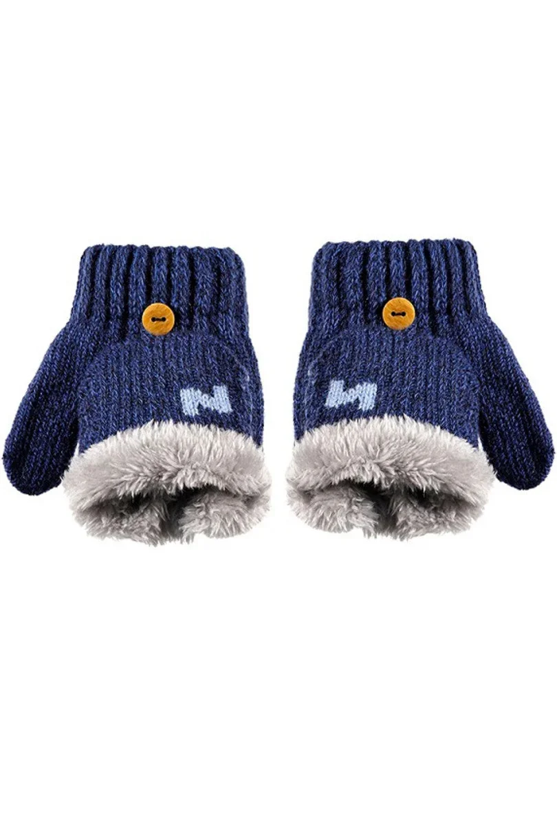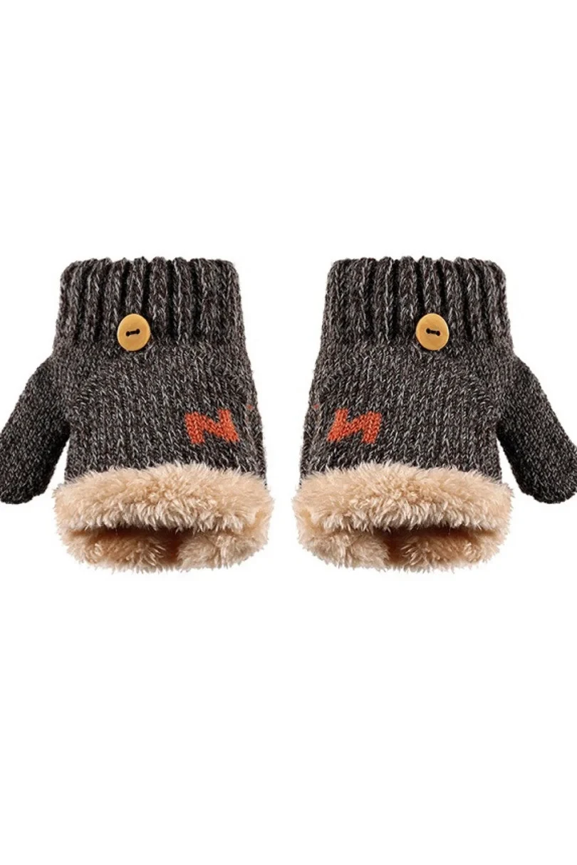 Chlapecké rukavice zateplené huňatou kožešinou, s kapucí na prsty.