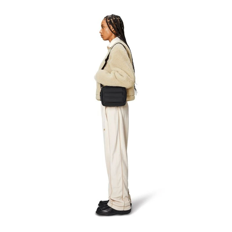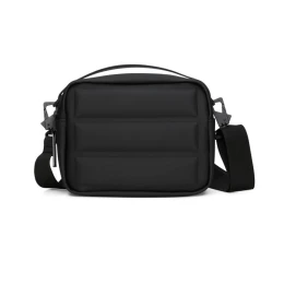 Torba Shield Box Bag to interpretacja kultowej torby Rains' Box Bag, z panelami z przodu i z tyłu, które dają iluzję puchówki. Projekt wykończony jest wytrzymałym górnym uchwytem i regulowanym paskiem, mocowanym za pomocą karabińczyków.