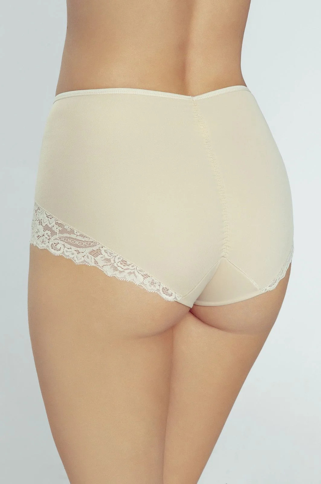 Jemně tvarující kalhotky, zdobené kolem stehen ažurovou krajkou. Umožňují dosáhnout efektu zeštíhlení břišní oblasti, přičemž si zachovávají velmi estetický a elegantní vzhled. Svislé šití na zadní straně, díky kterému se prádlo pěkně přizpůsobí hýždím. Složení: 80 % polyamid, 17 % elastan, 3 % bavlna.