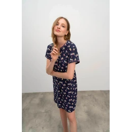 Dámská noční košile pro kvalitní spánek Pohodlná noční košile s krátkým rukávem a výstřihem do V s roztomilým potiskem domečků je vyrobená z vysoce kvalitní, genetický nemodifikované řecké bavlny, která poskytuje vysoké pohodlí, příjemný pocit na dotek, prodyšnost, pružnost a odolnost.
