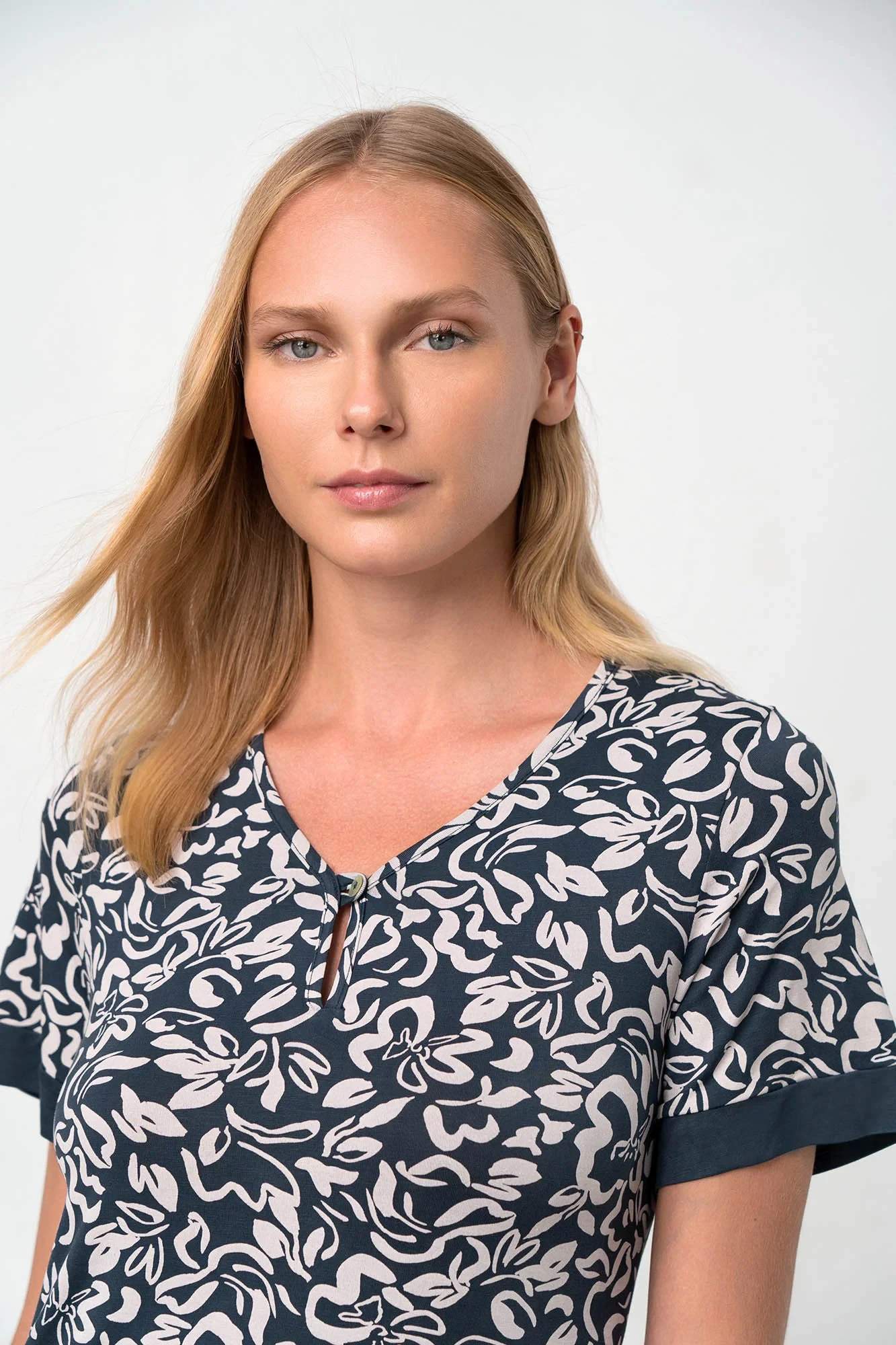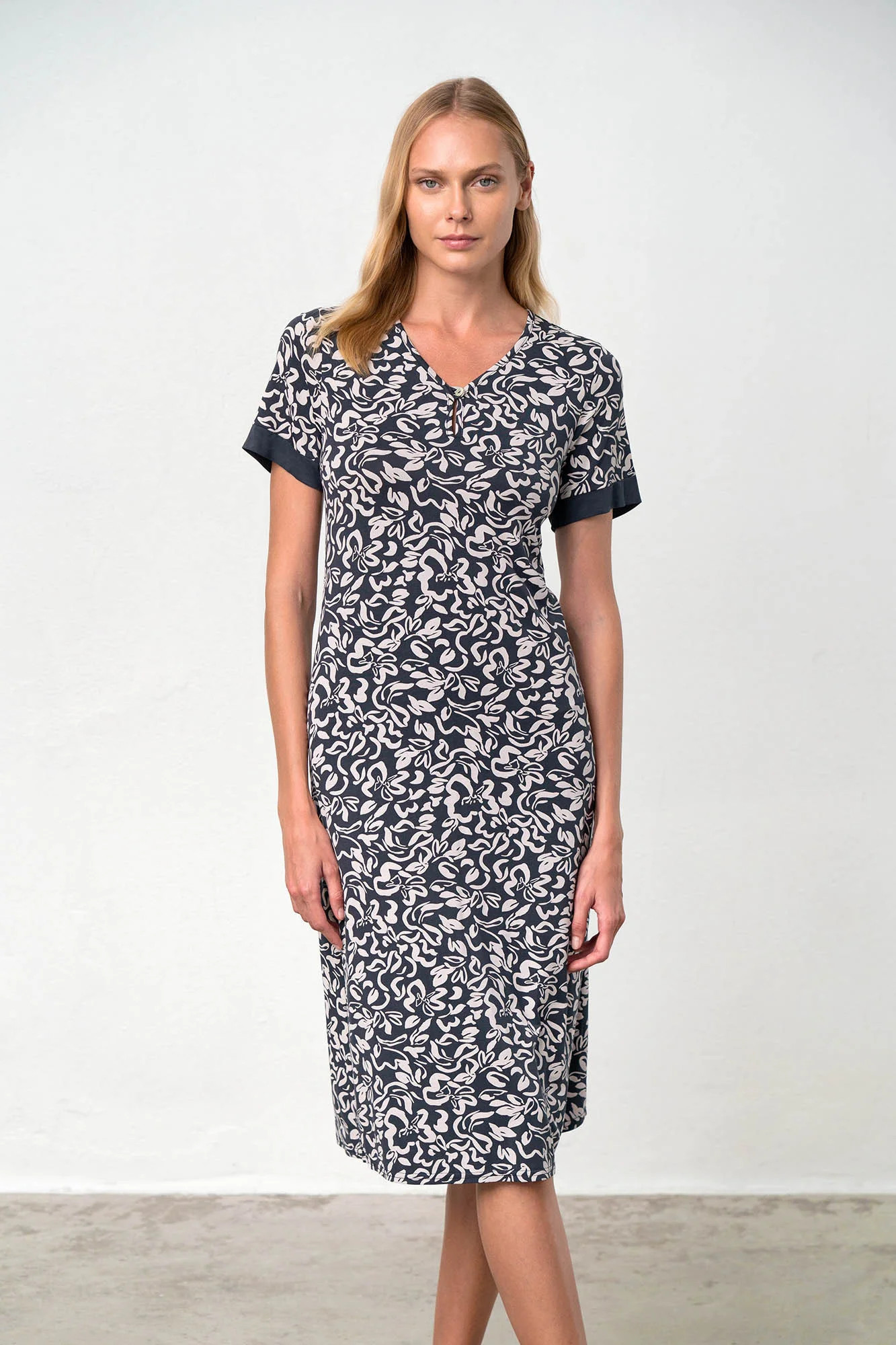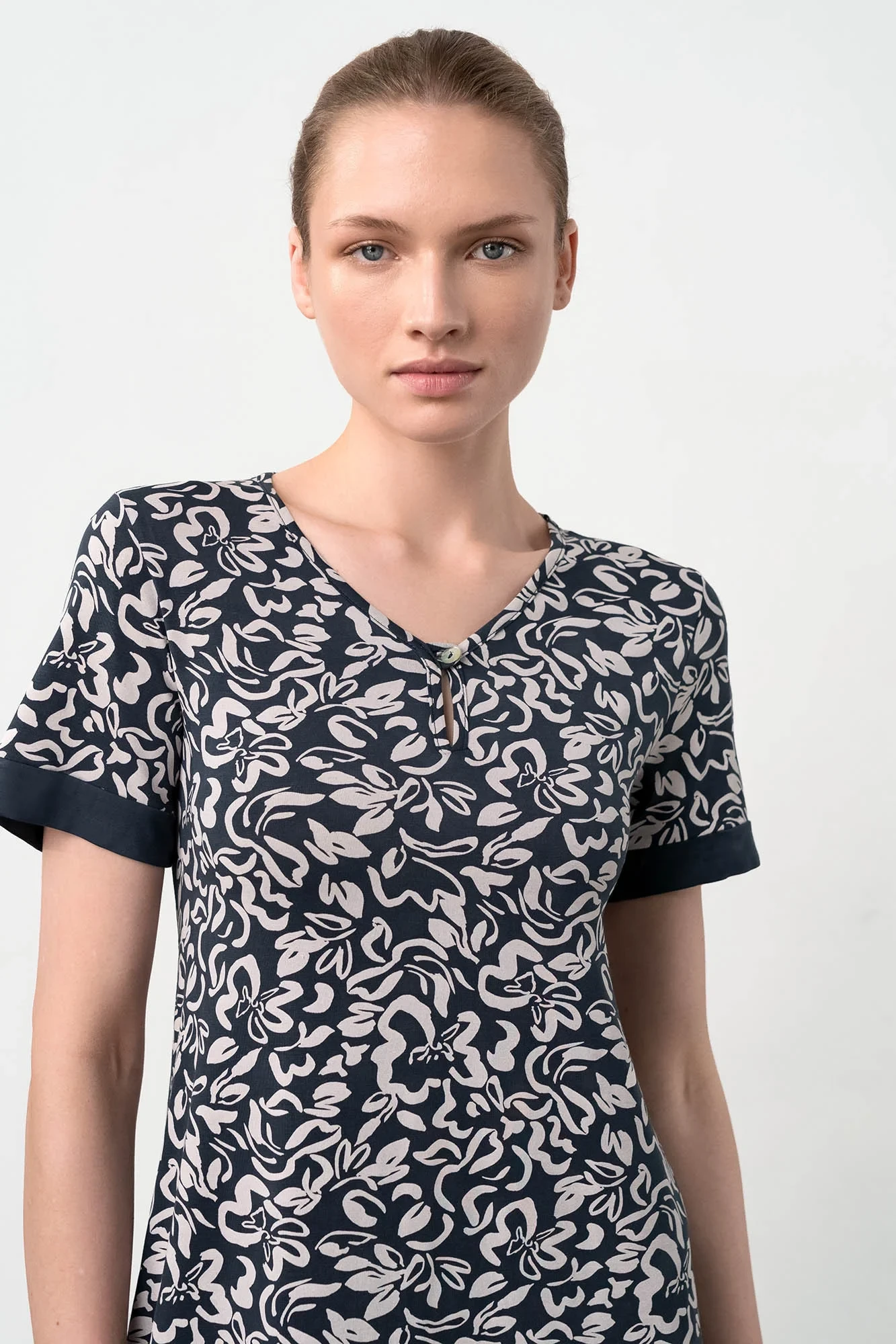 - střih: 110 cm, krátký rukáv, výstřih do V na knoflíček