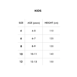 - velikosti : XS – 110 cm, S – 120 cm, M – 130 cm, L – 140 cm