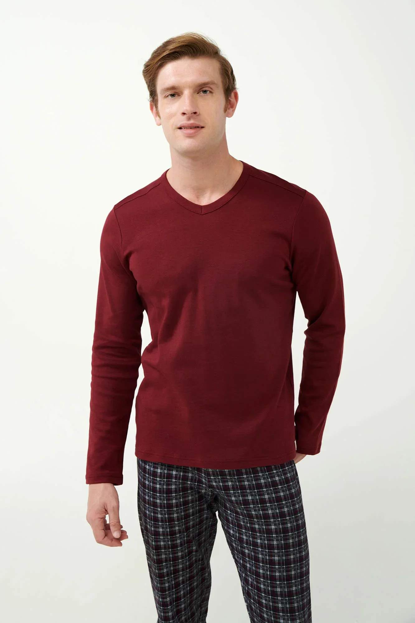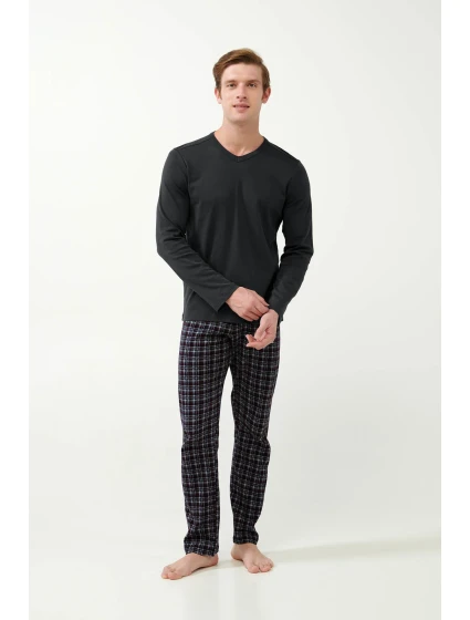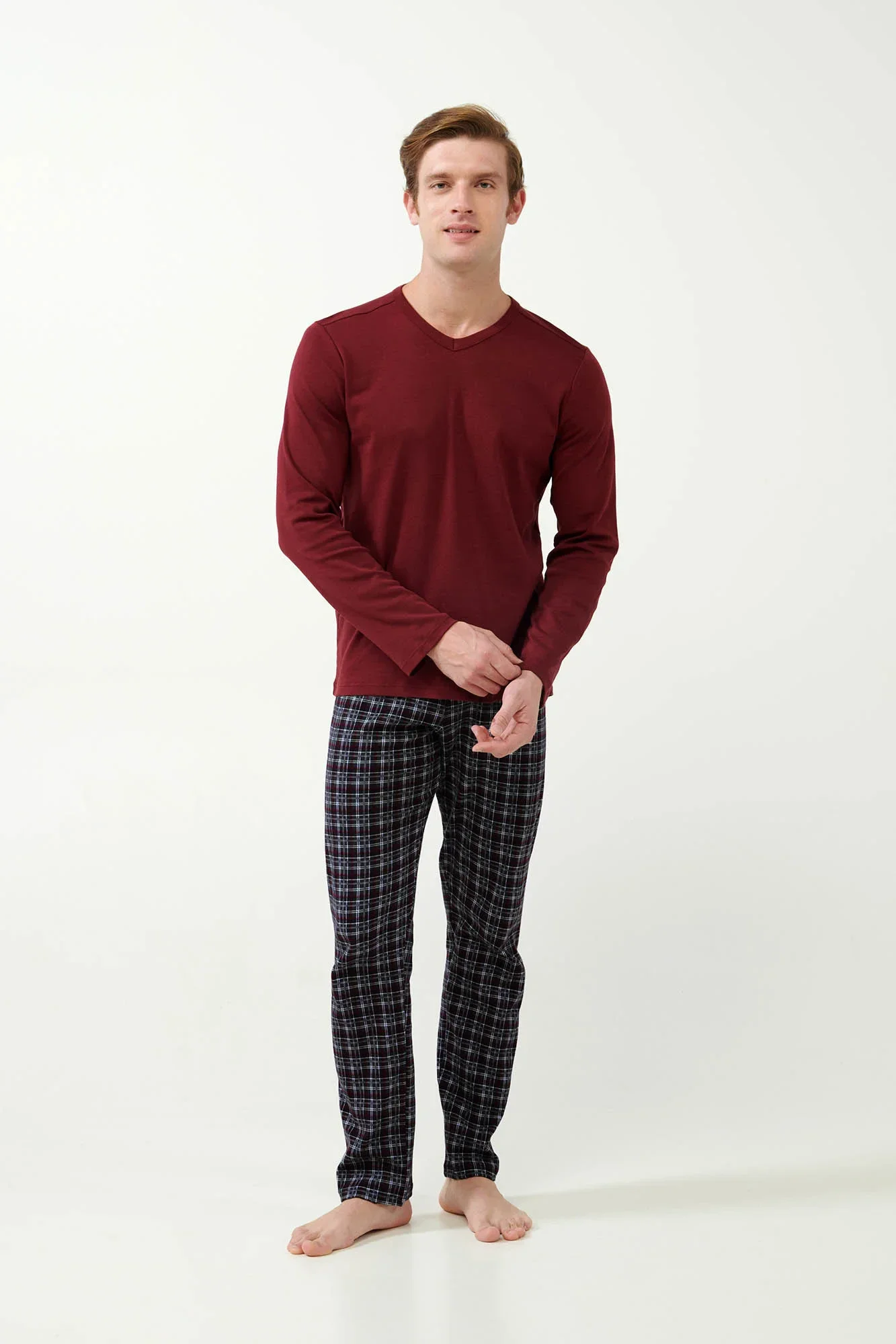 Vylepšete si své oblečení na spaní s naším pánským pyžamem, které má klasické kalhoty s tartanovým vzorem a elegantní hladký vršek. Pyžamo je vyrobeno ze 100% interlockové bavlny a nabízí výjimečnou měkkost, hřejivost a odolnost pro klidný spánek. Nadčasové tartanové kalhoty dodávají tradiční šarm, zatímco hladký vršek představuje sofistikovaný kontrast. Tato souprava, která je ideální pro útulné večery nebo pohodové víkendy, kombinuje styl s pohodlím, a je tak nezbytným doplňkem vaší sbírky oblečení na spaní.