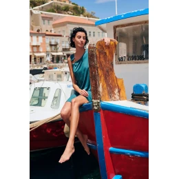 - délka a střih: 95 cm, krátký rukáv, asymetrický výstřih