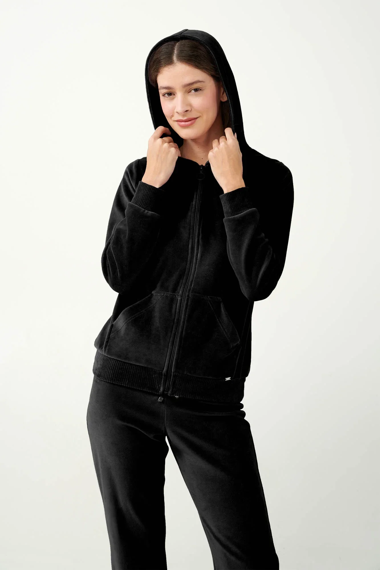 Vamp - Sametová tepláková souprava na zip s kapucí 21140 - Vamp