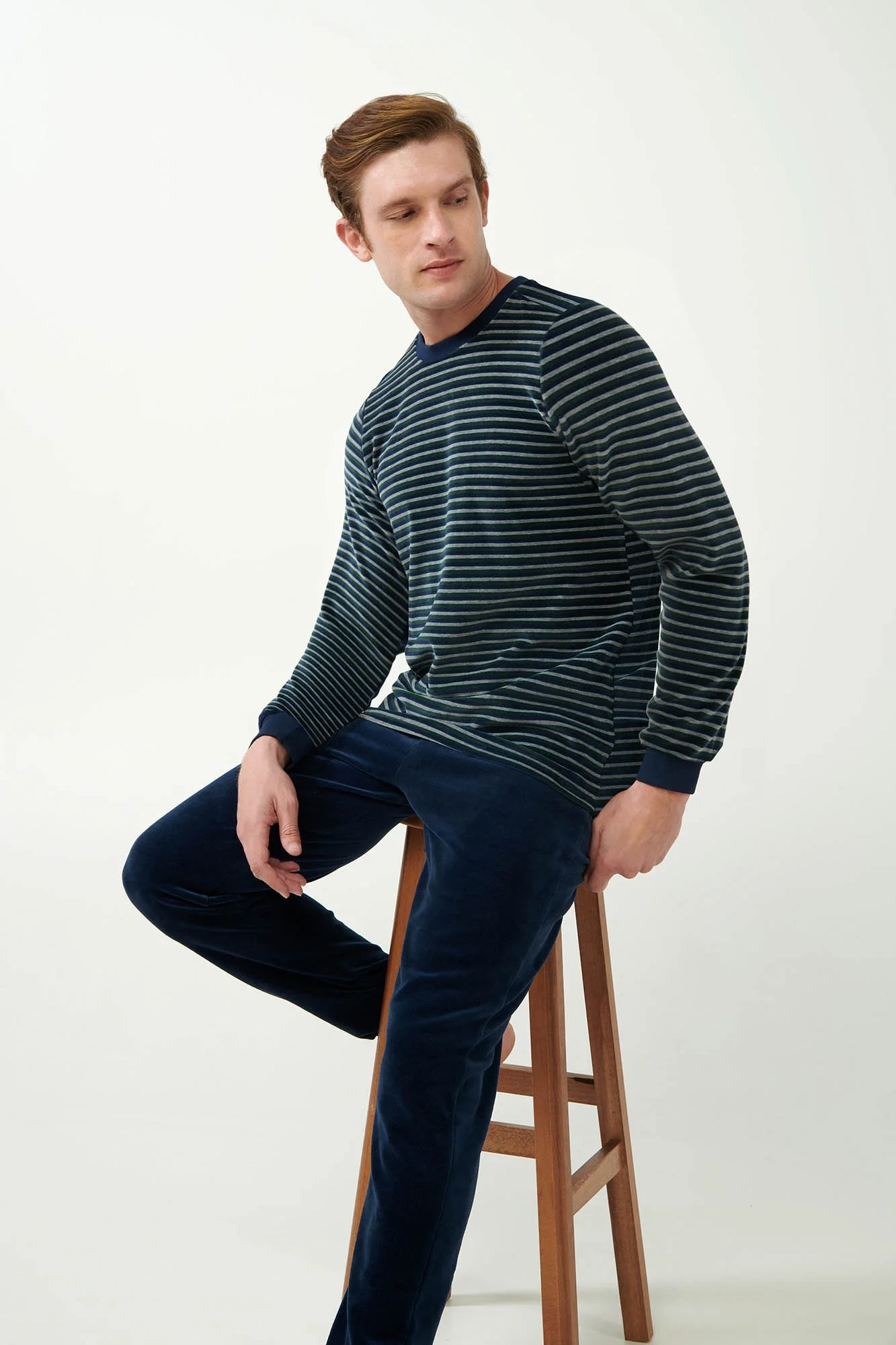 Vamp - Sametové pánské pyžamo s manžetami 21961 - Vamp