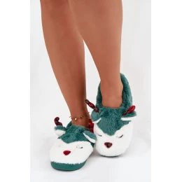 Vánoční dámské pantofle s motivem soba kožené zelené Orsella