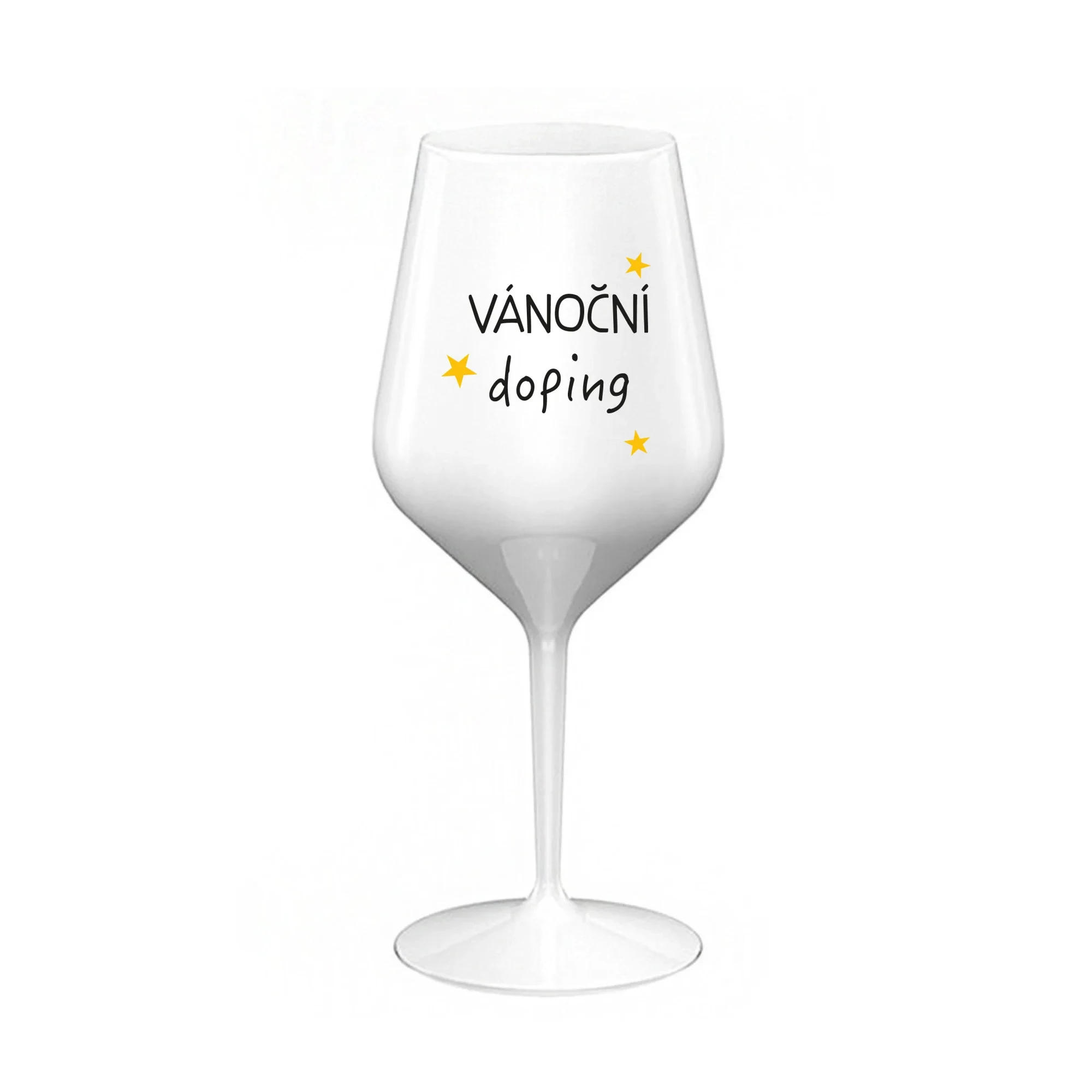 VÁNOČNÍ DOPING - bílá nerozbitná sklenice na víno 470 ml
