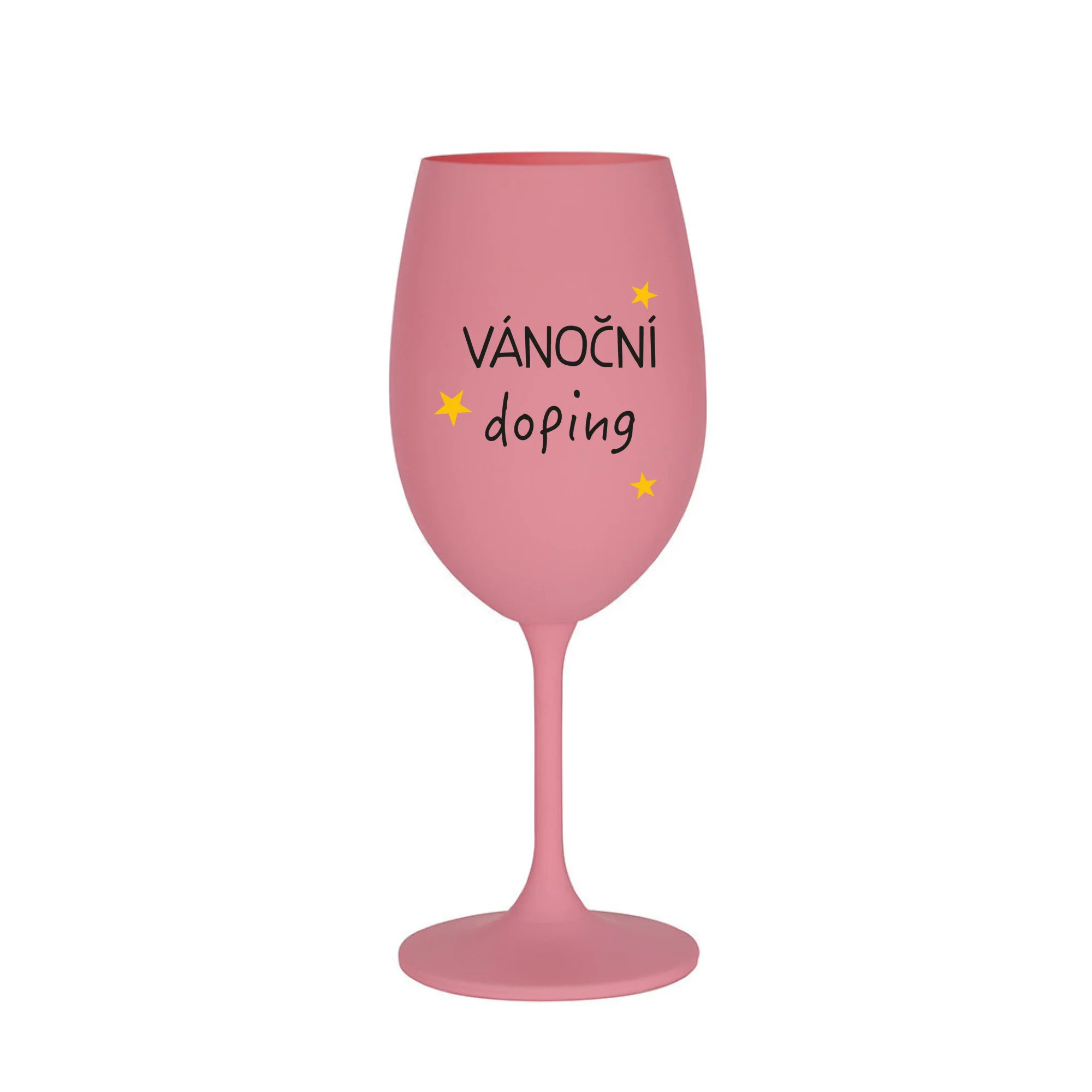 VÁNOČNÍ DOPING - růžová sklenice na víno 350 ml