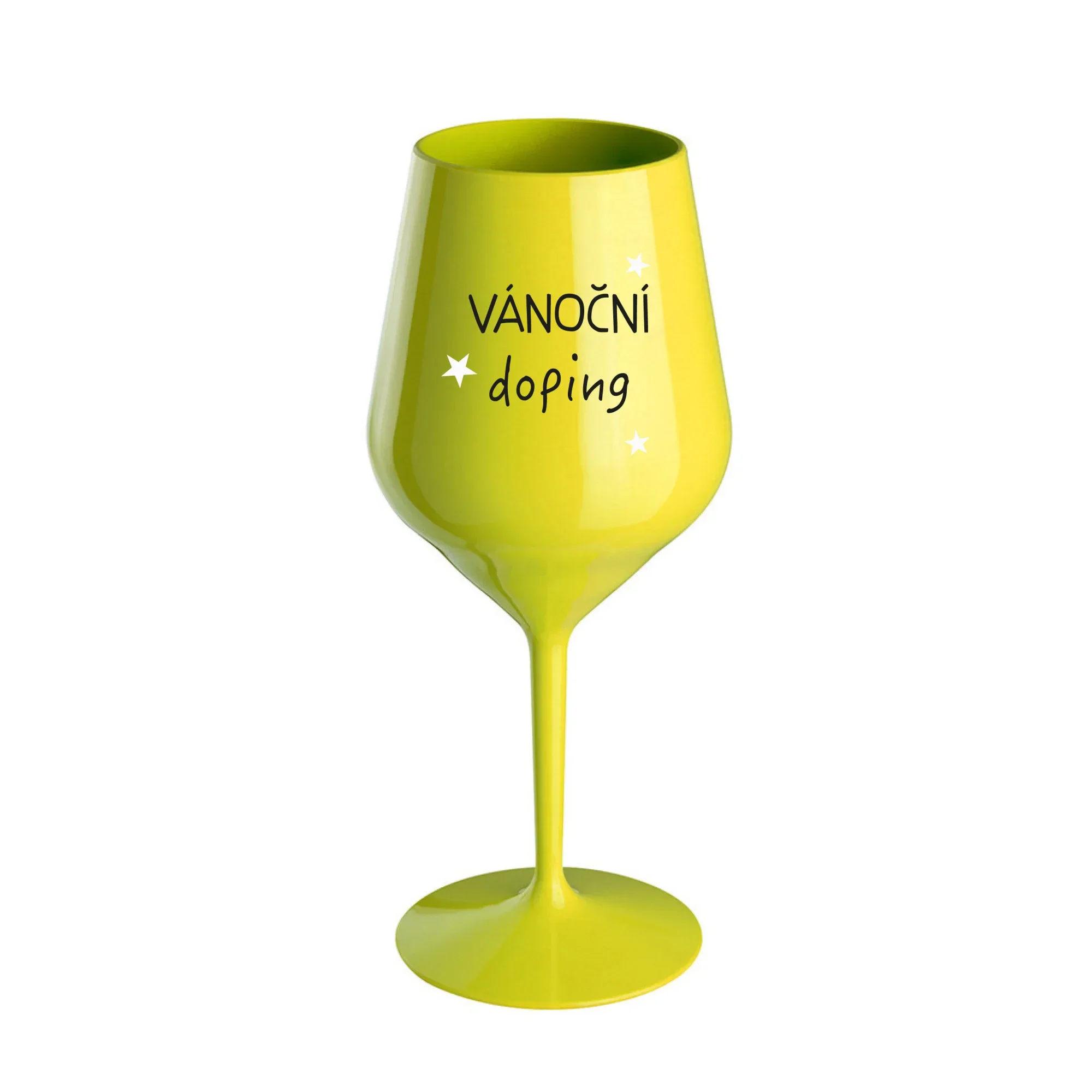 VÁNOČNÍ DOPING - žlutá nerozbitná sklenice na víno 470 ml