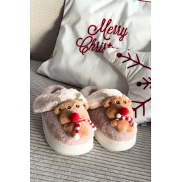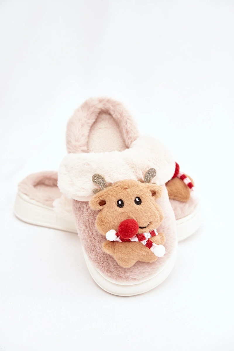 Vánoční kožené domácí pantofle dámské béžové model 21821768 - Boto