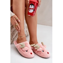 Vánoční Pantofle S Motivem Sobů Kožešinové Růžové Asielle