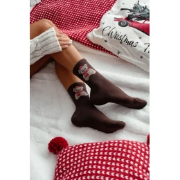 Bavlněné dámské ponožky s vánočními vzory jsou roztomilým doplňkem, který dodá zimním outfitům výjimečný charakter. Měkké, pohodlné a elastické — ideální na chladné dny, jak na nošení doma, tak na každodenní nošení. Skvělá volba pro milovnice vánoční atmosféry.